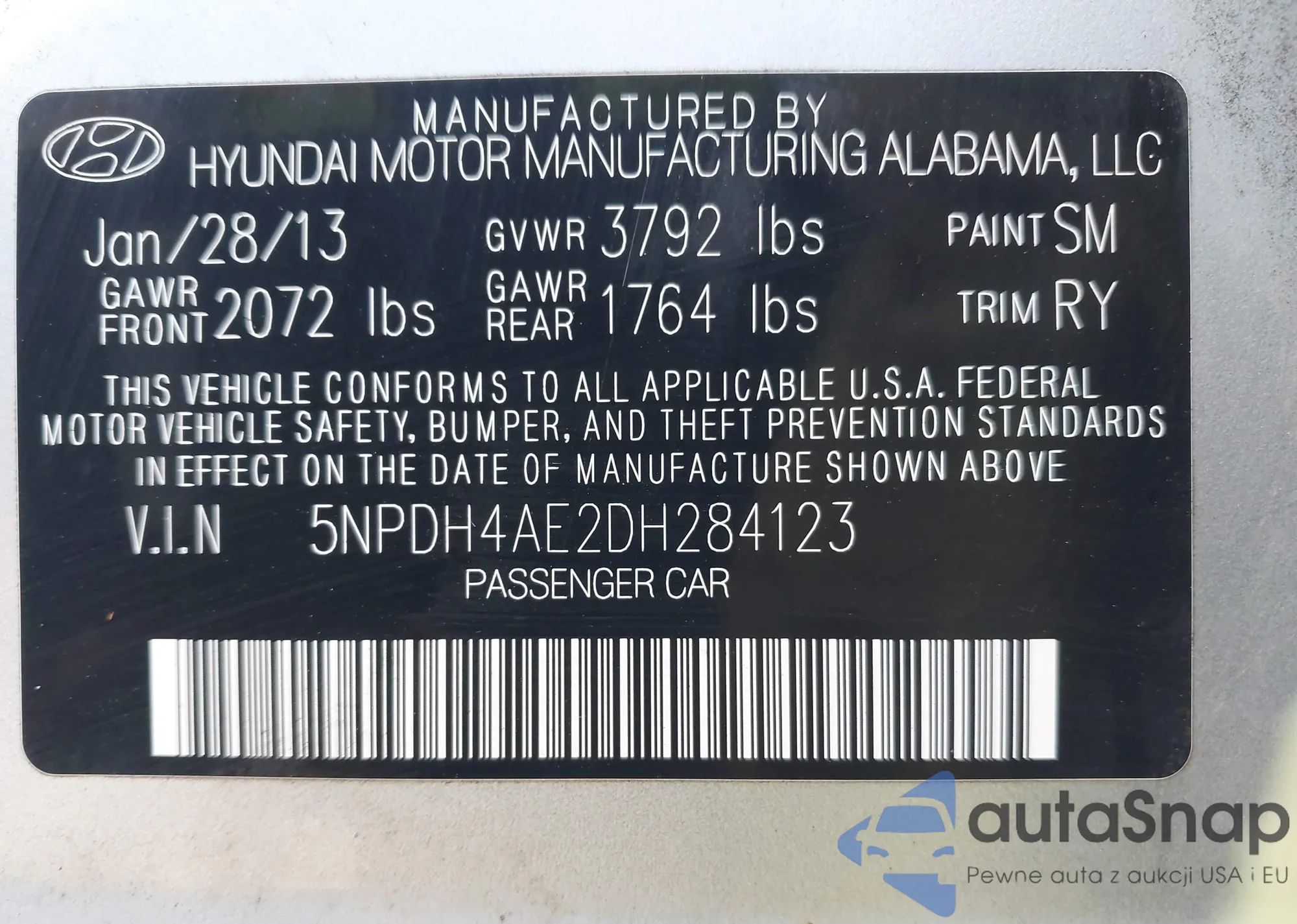 LOT: 44055393 VIN: 5NPDH4AE2DH284123