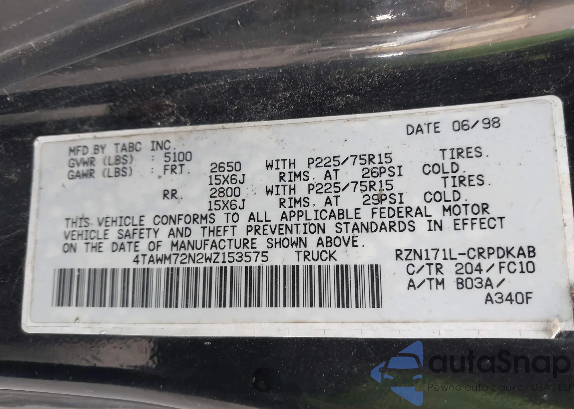 • VIN 4TAWM72N2WZ153575