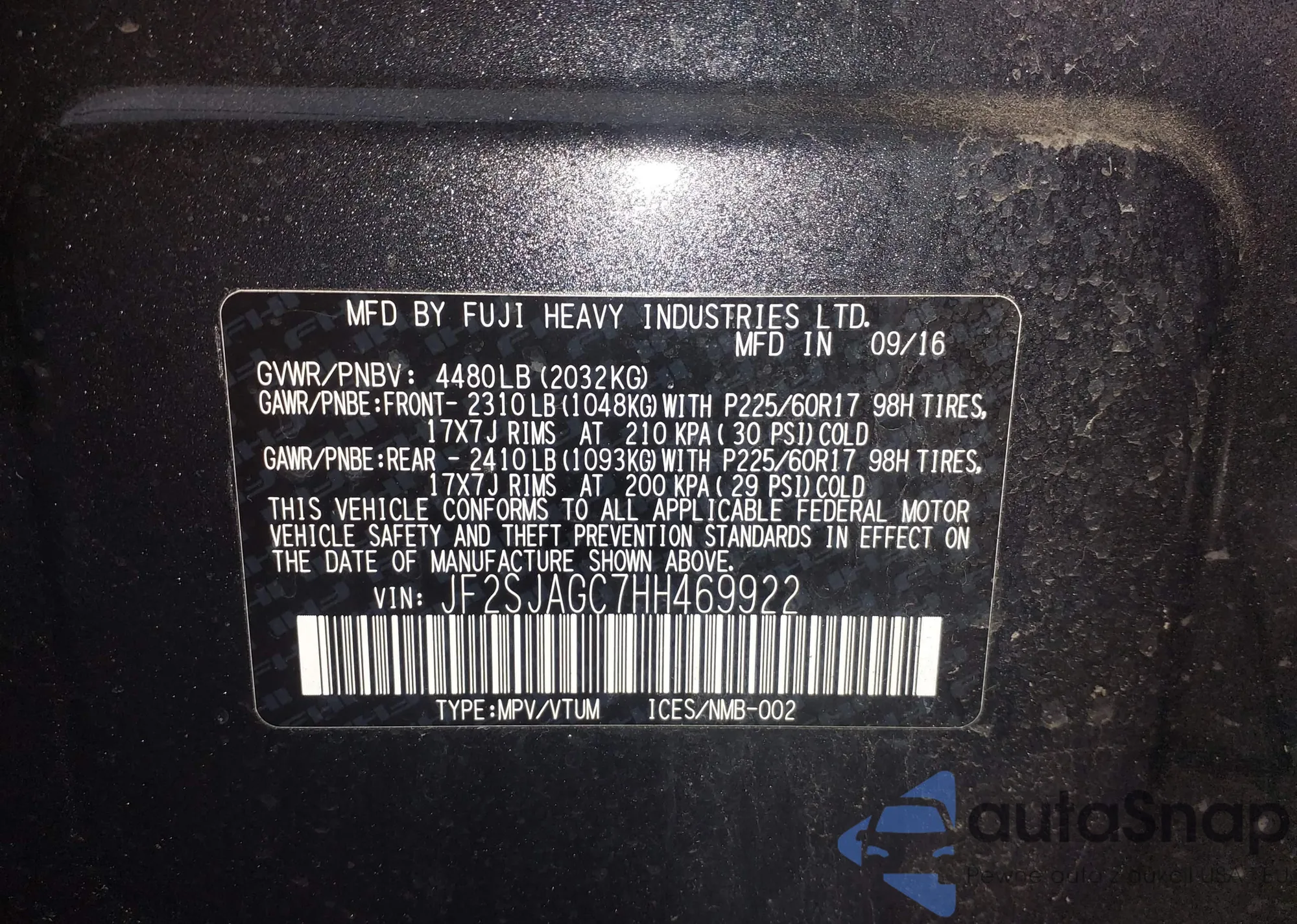 • VIN WBAJB9C5XJG463862