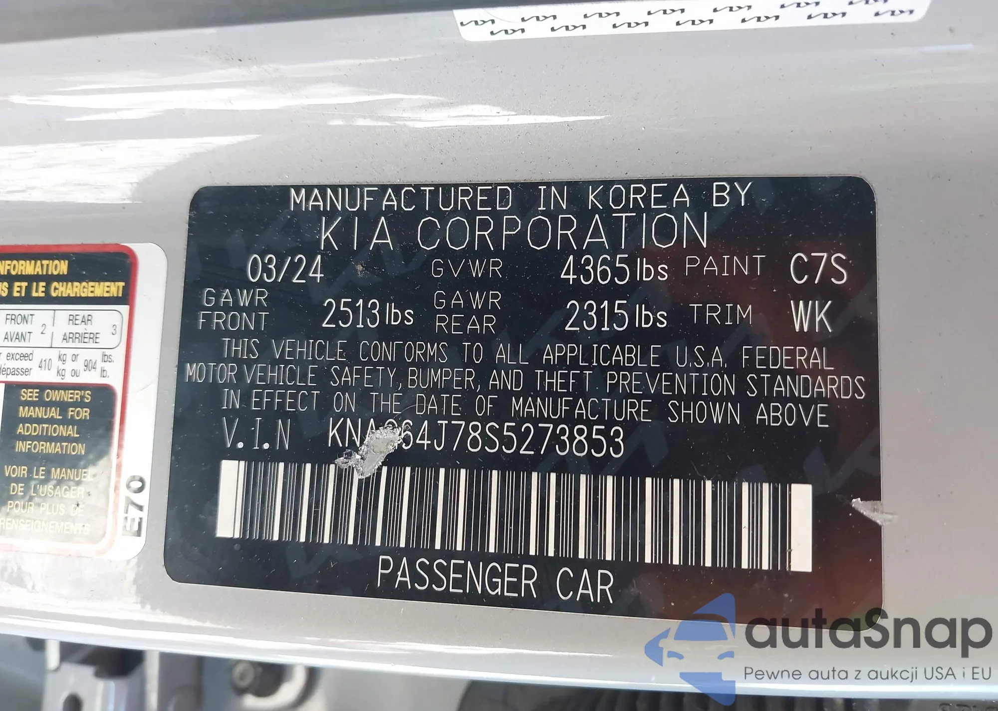 • VIN KNAG64J78S5273853