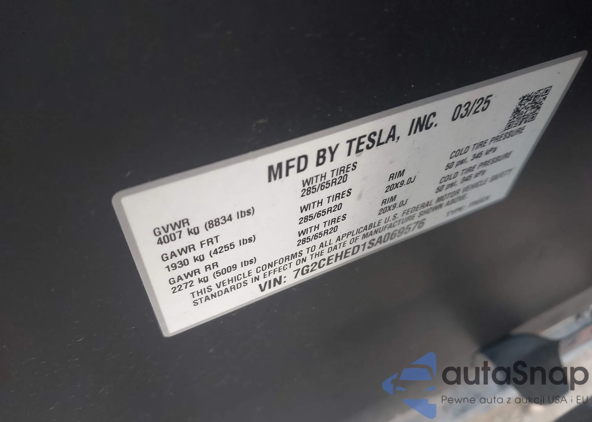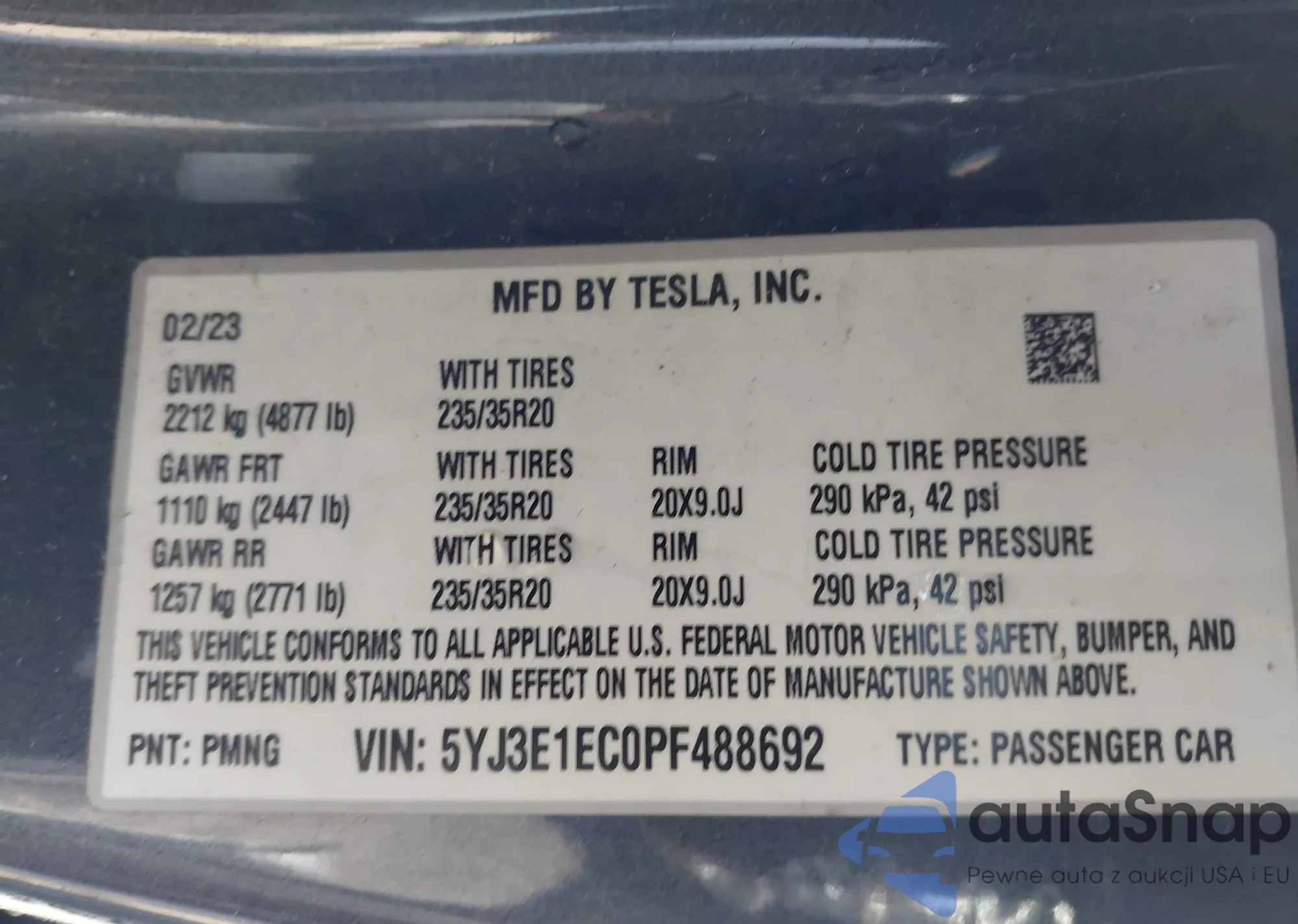 • VIN 5YJ3E1EC0PF488692