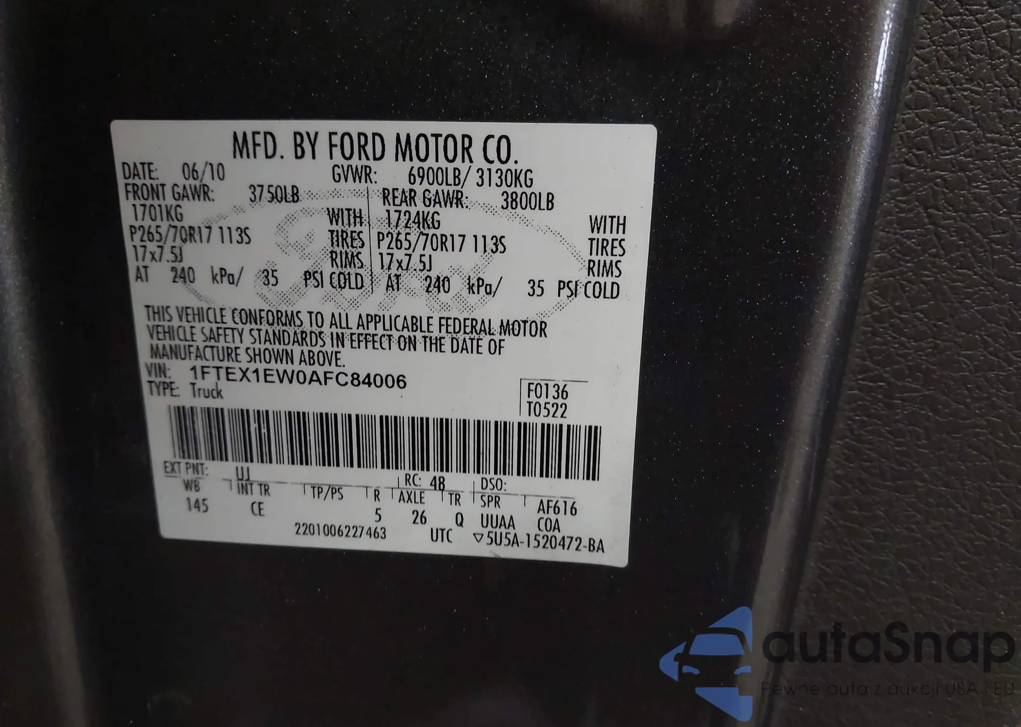 • VIN 1FTHX26F9SKC01389