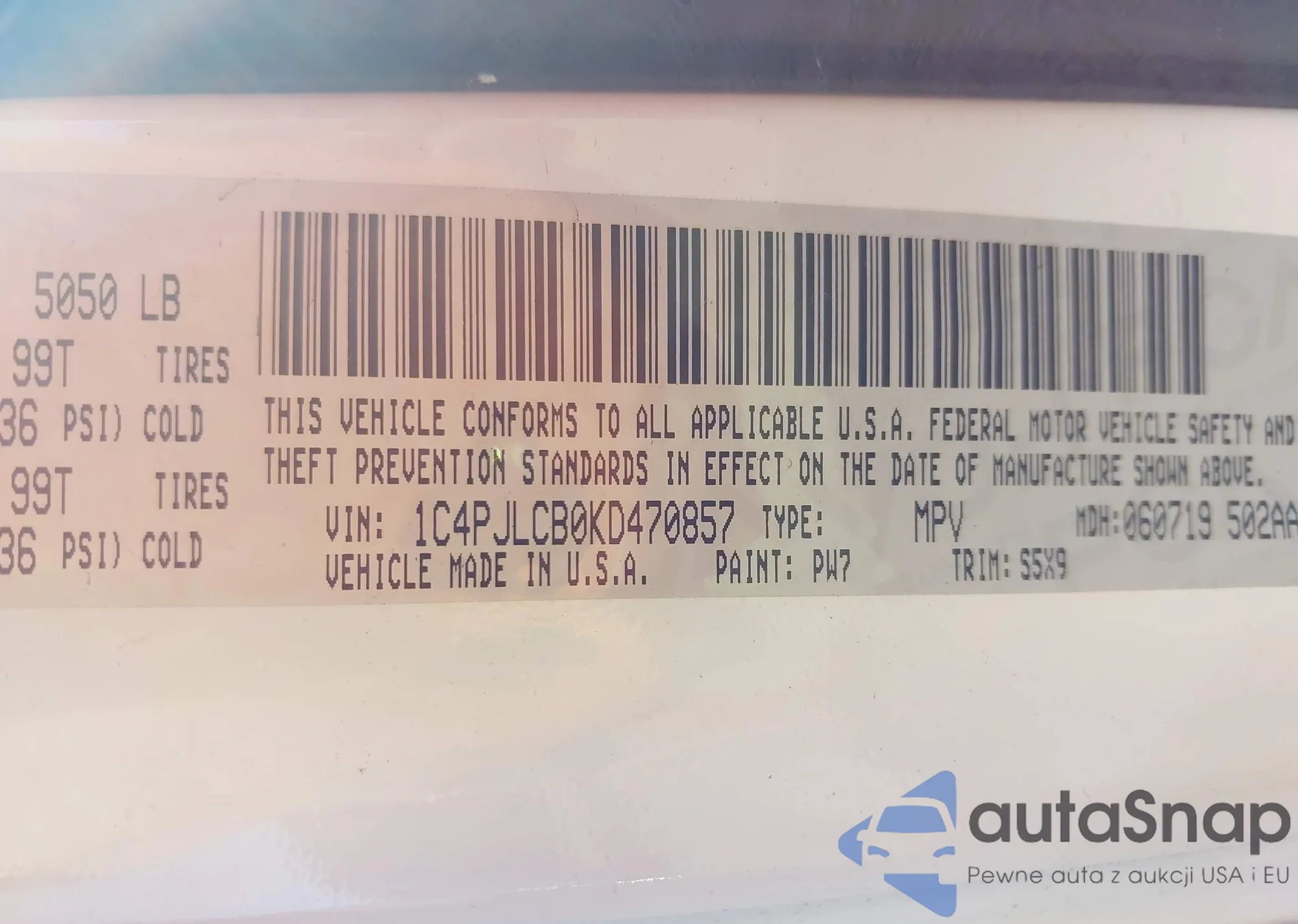 • VIN 1C4PJLCB0KD470857