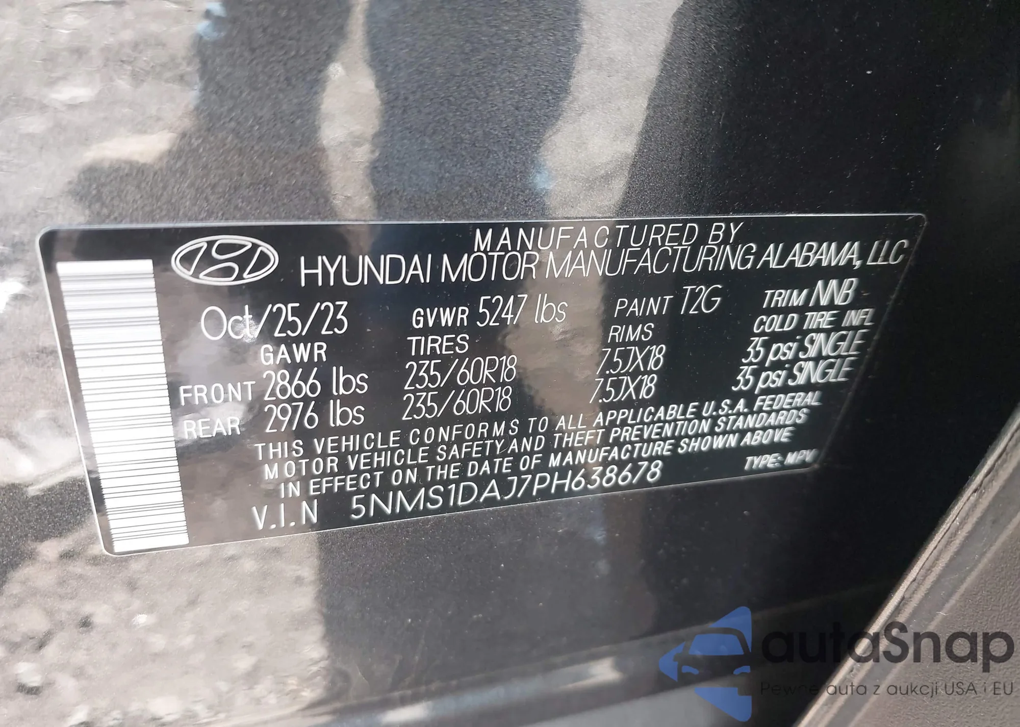 • VIN 5NMS1DAJ7PH638678