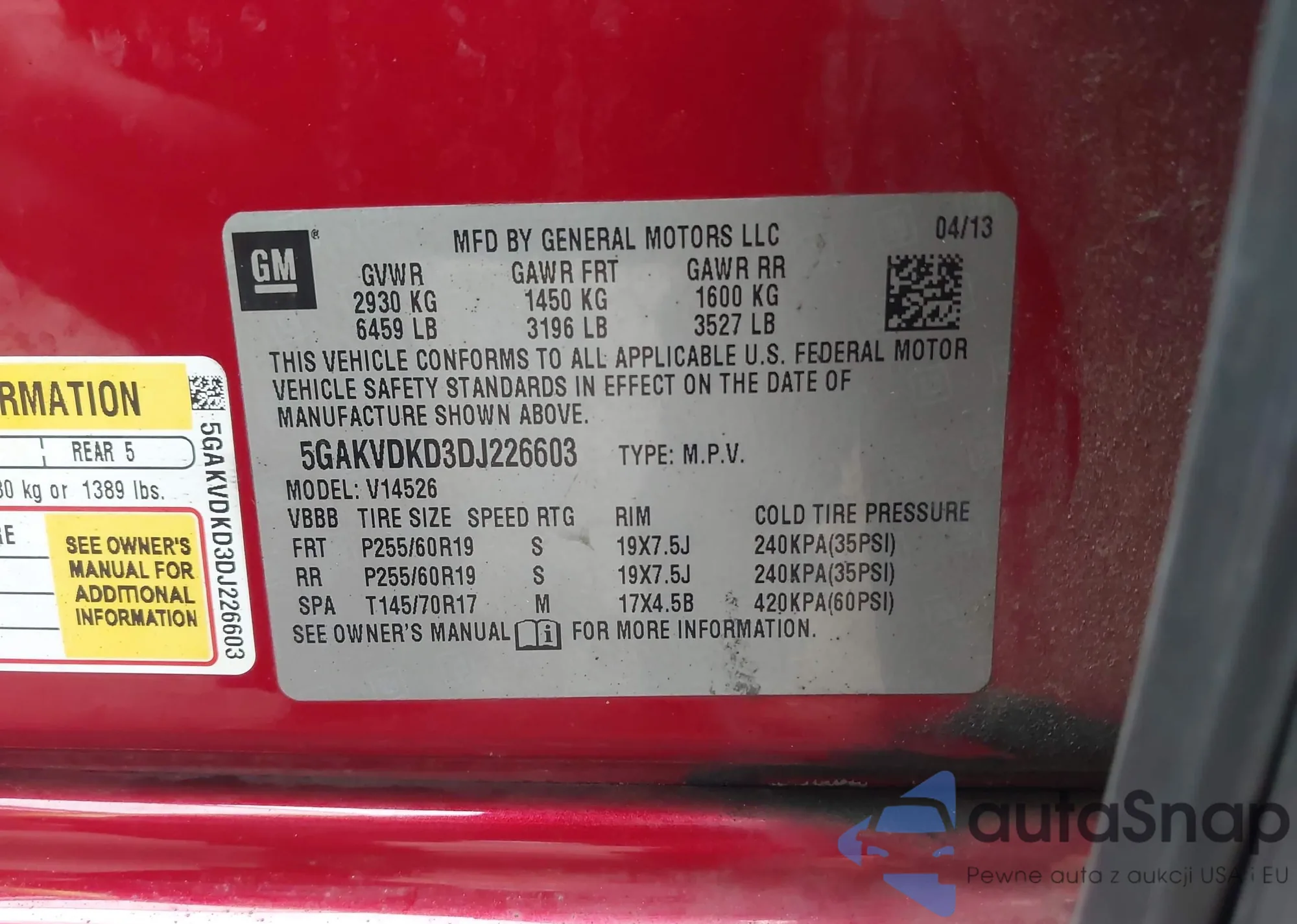 • VIN 5GAKVDKD3DJ226603