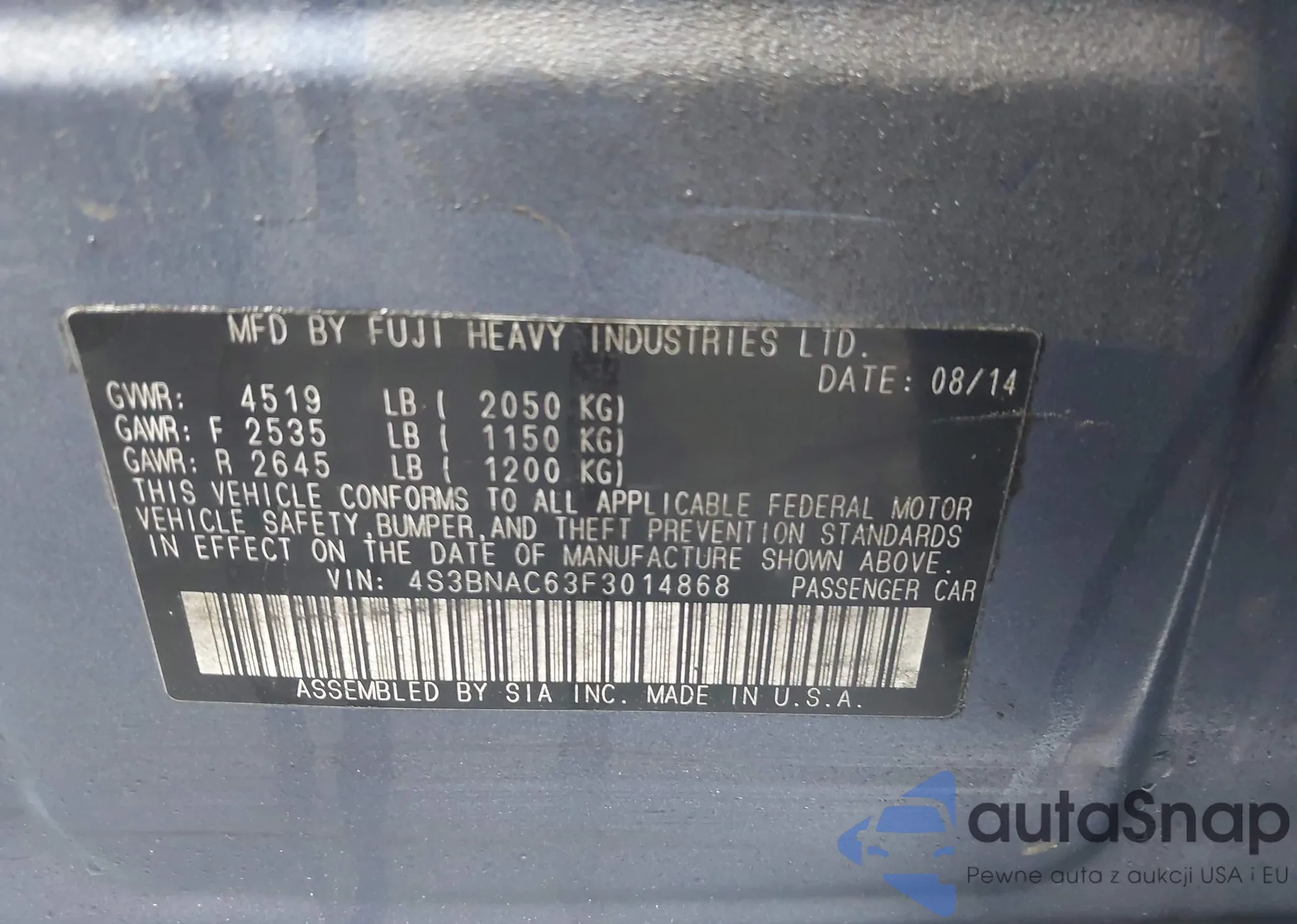 LOT: 43782517 VIN: 4S3BNAC63F3014868