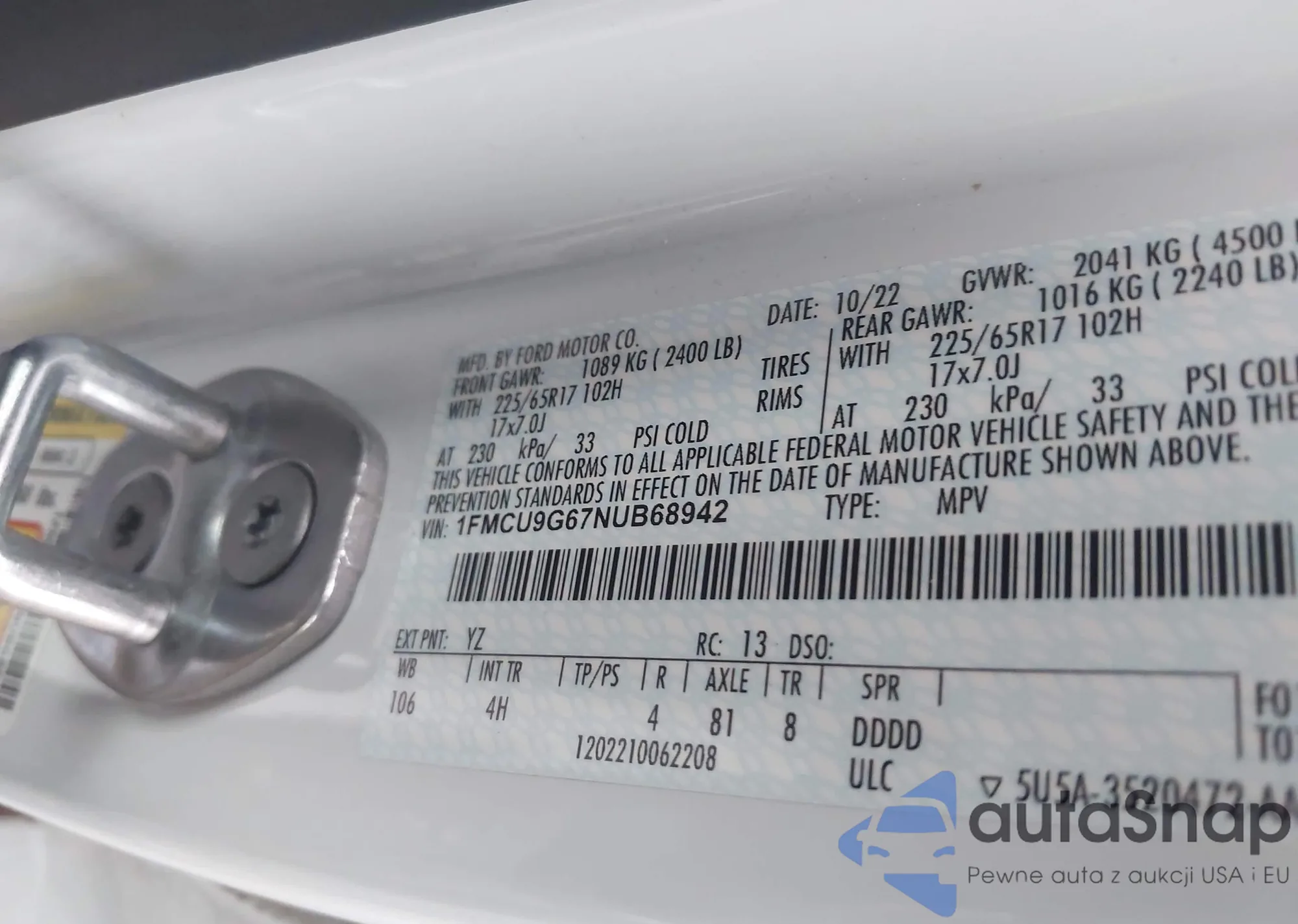 LOT: 43788625 VIN: 1FMCU9G67NUB68942