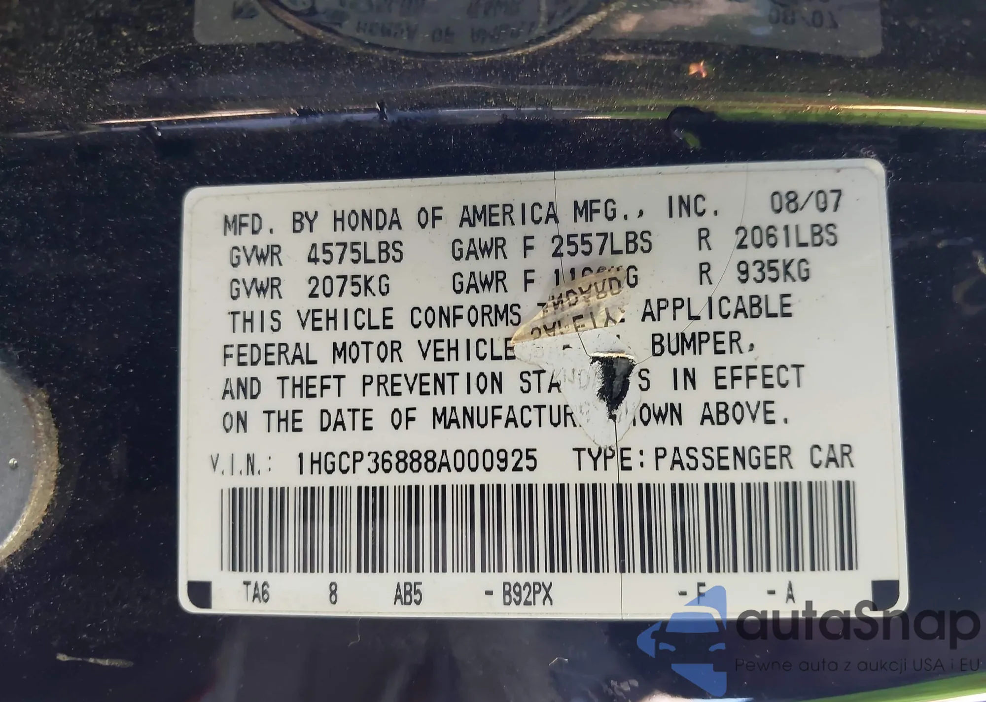• VIN 2HGFB2F93FH542303