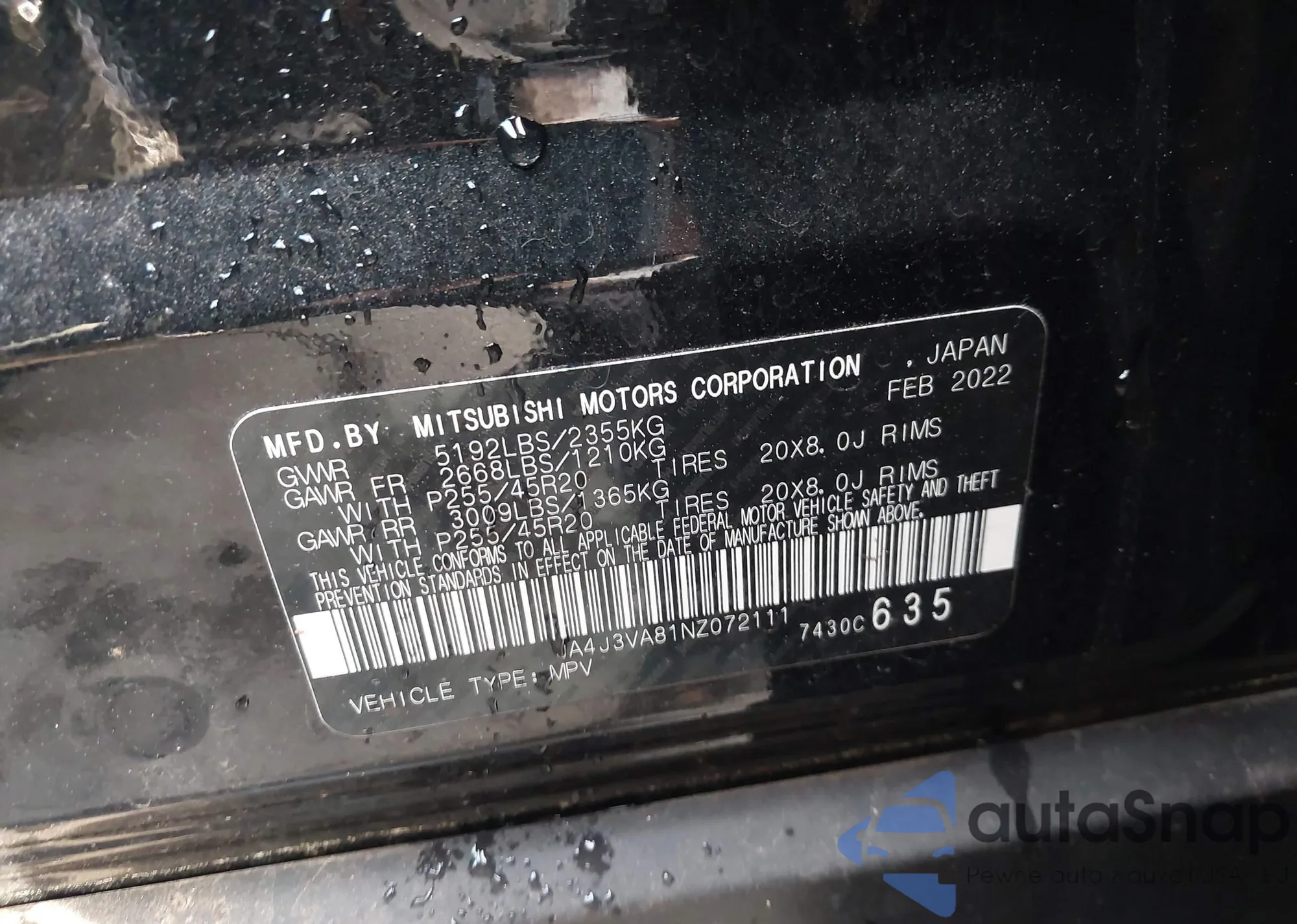 • VIN JA4J3VA81NZ072111