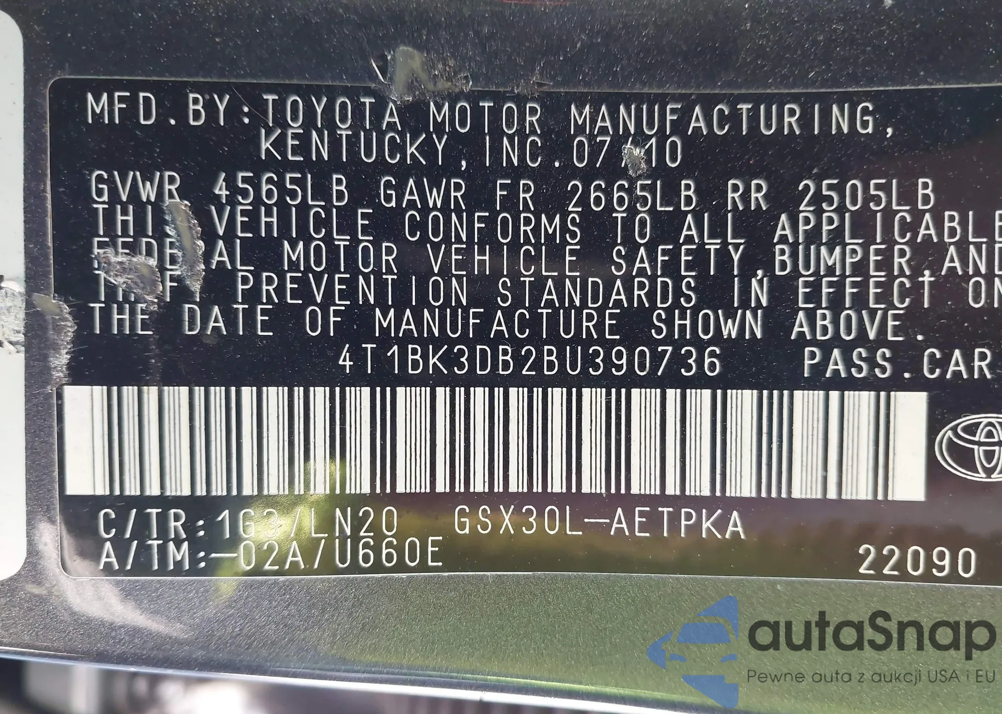 LOT: 43914658 VIN: 4T1BK3DB2BU390736