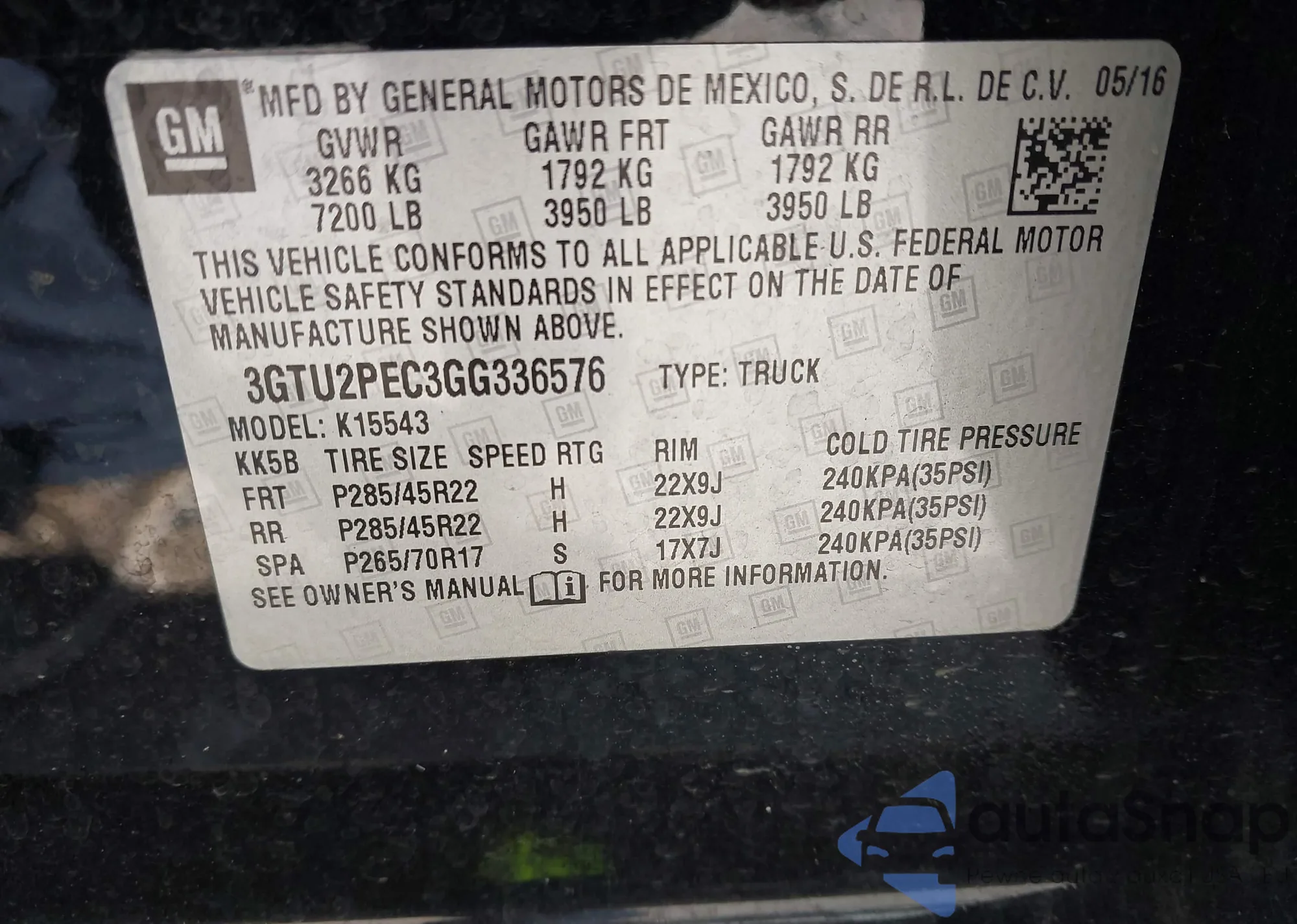 • VIN 3GTU2PEC3GG336576
