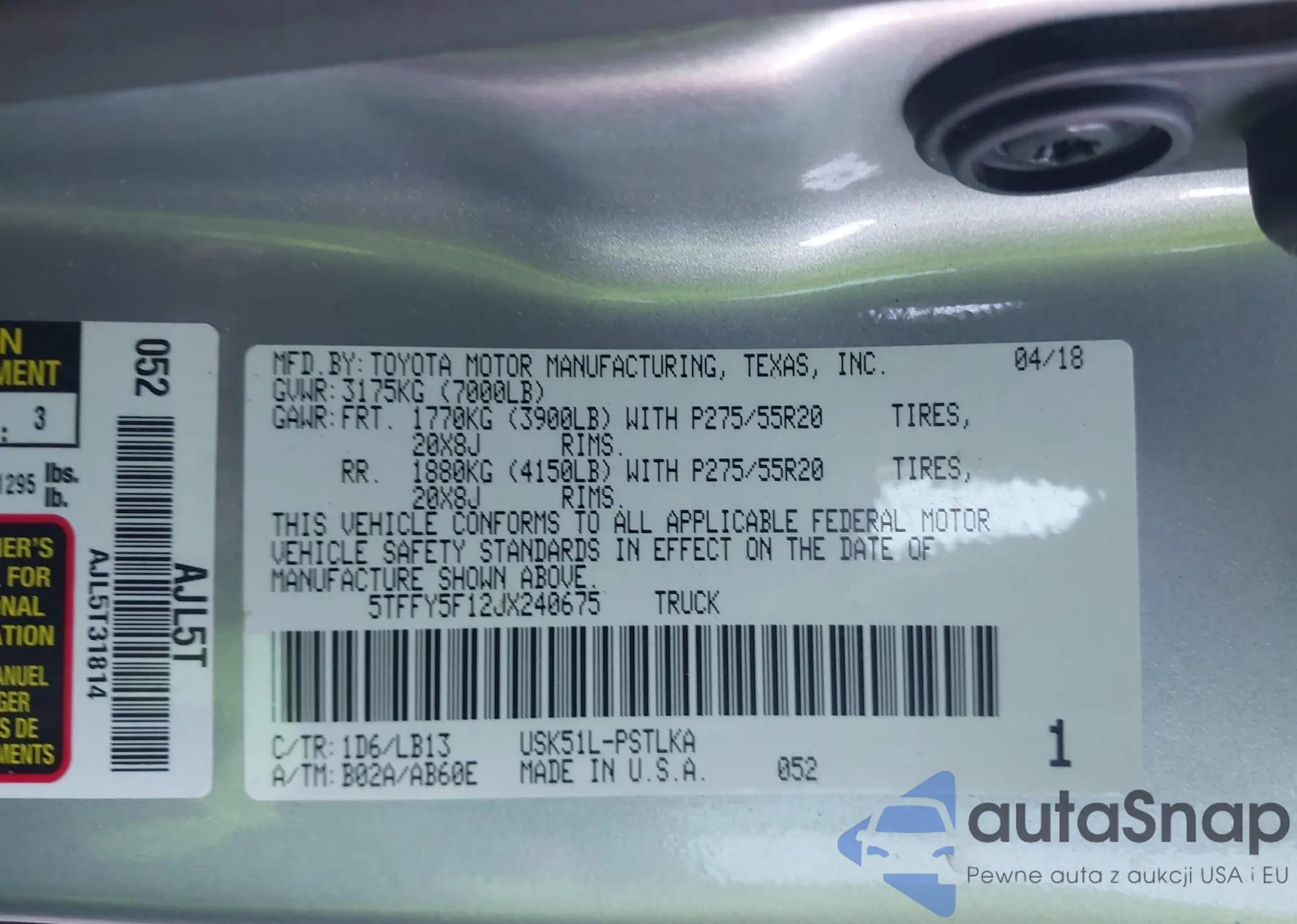 LOT: 43902798 VIN: 5TFFY5F12JX240675
