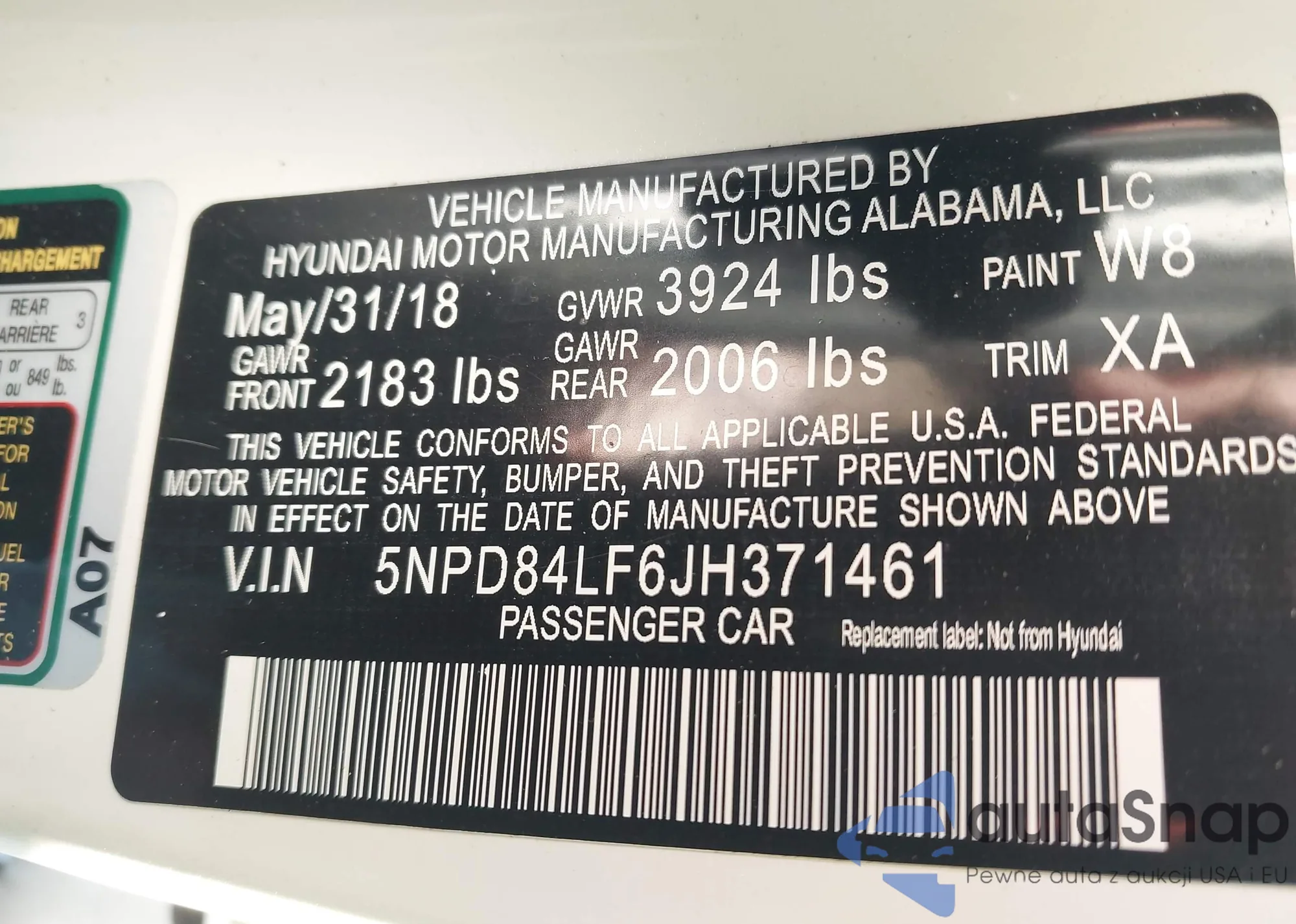 • VIN 5NPD84LF6JH371461