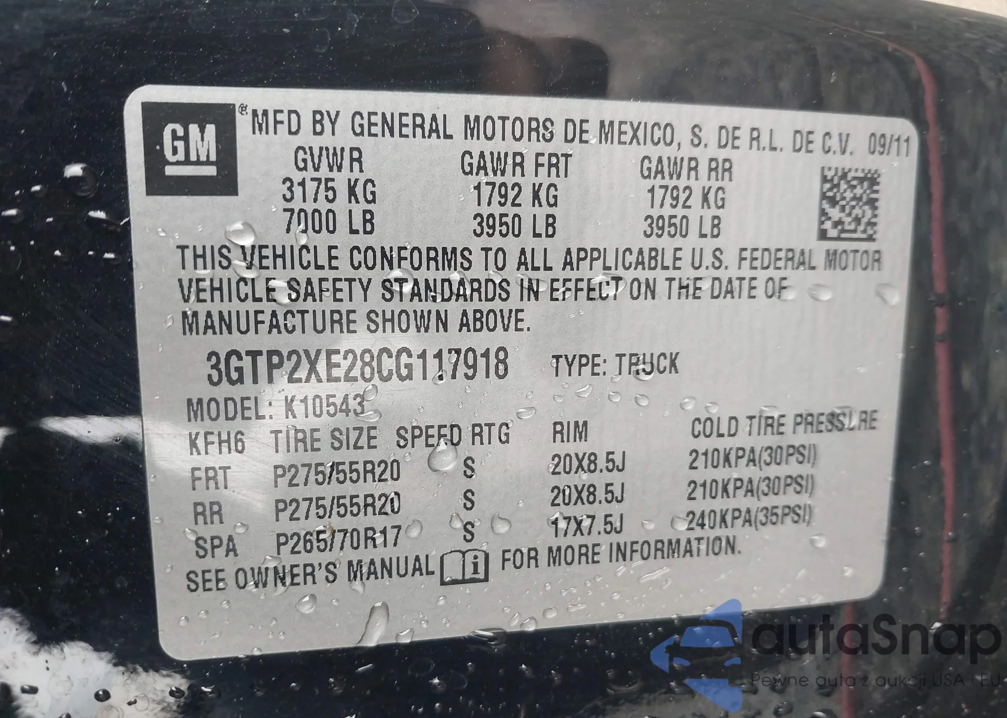 • VIN 3GTP2XE28CG117918