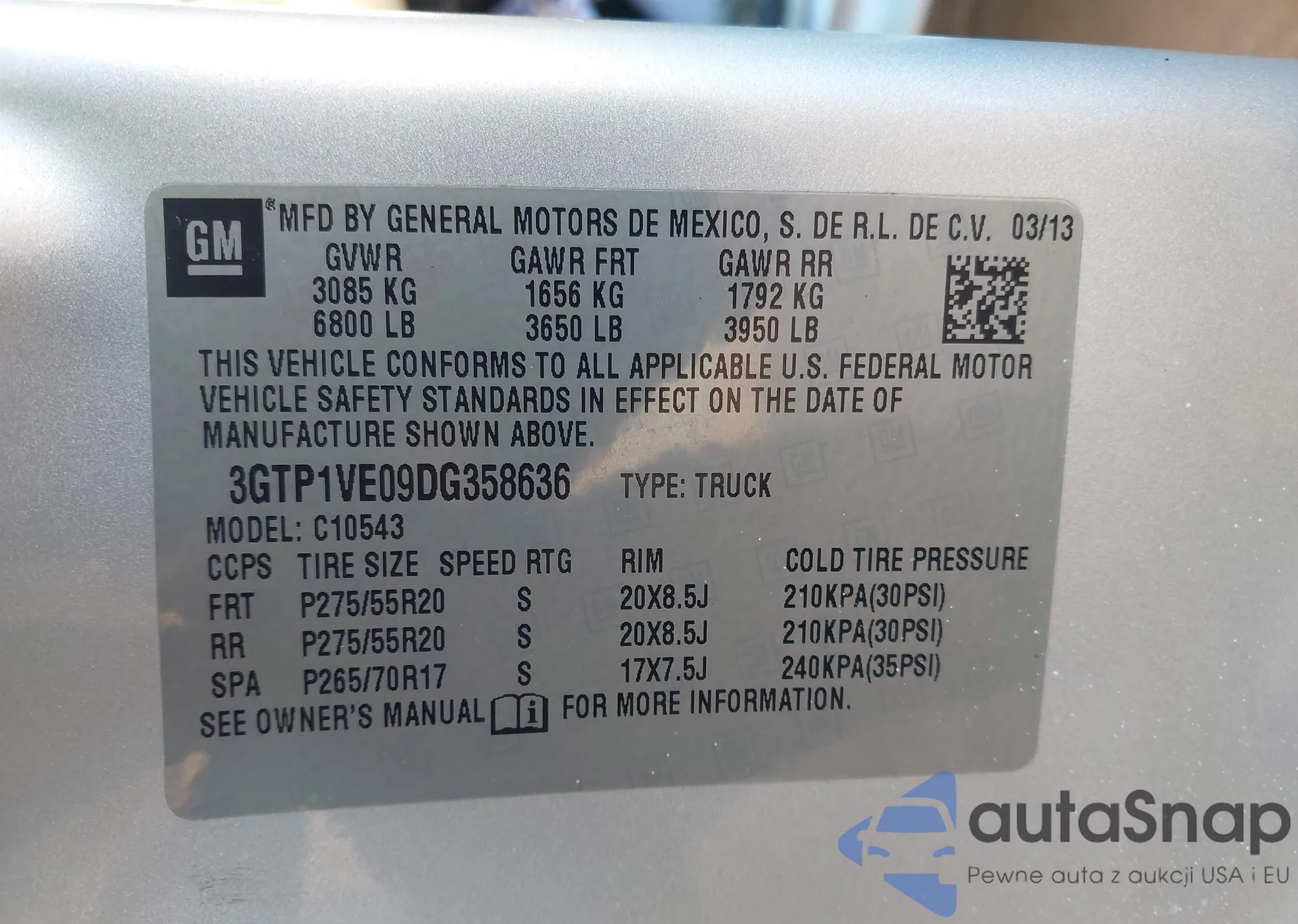 LOT: 43880427 VIN: 3GTP1VE09DG358636