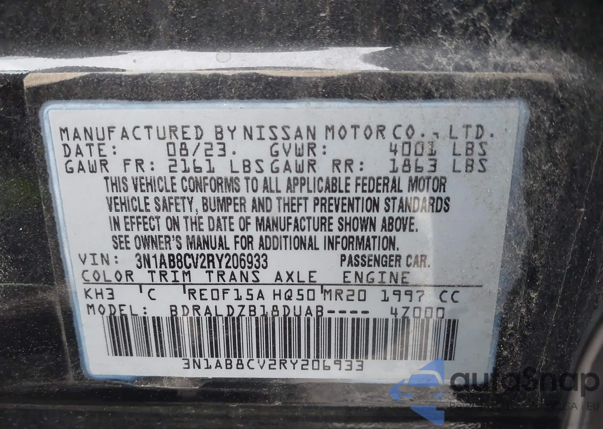 • VIN 3N1AB8CV2RY206933