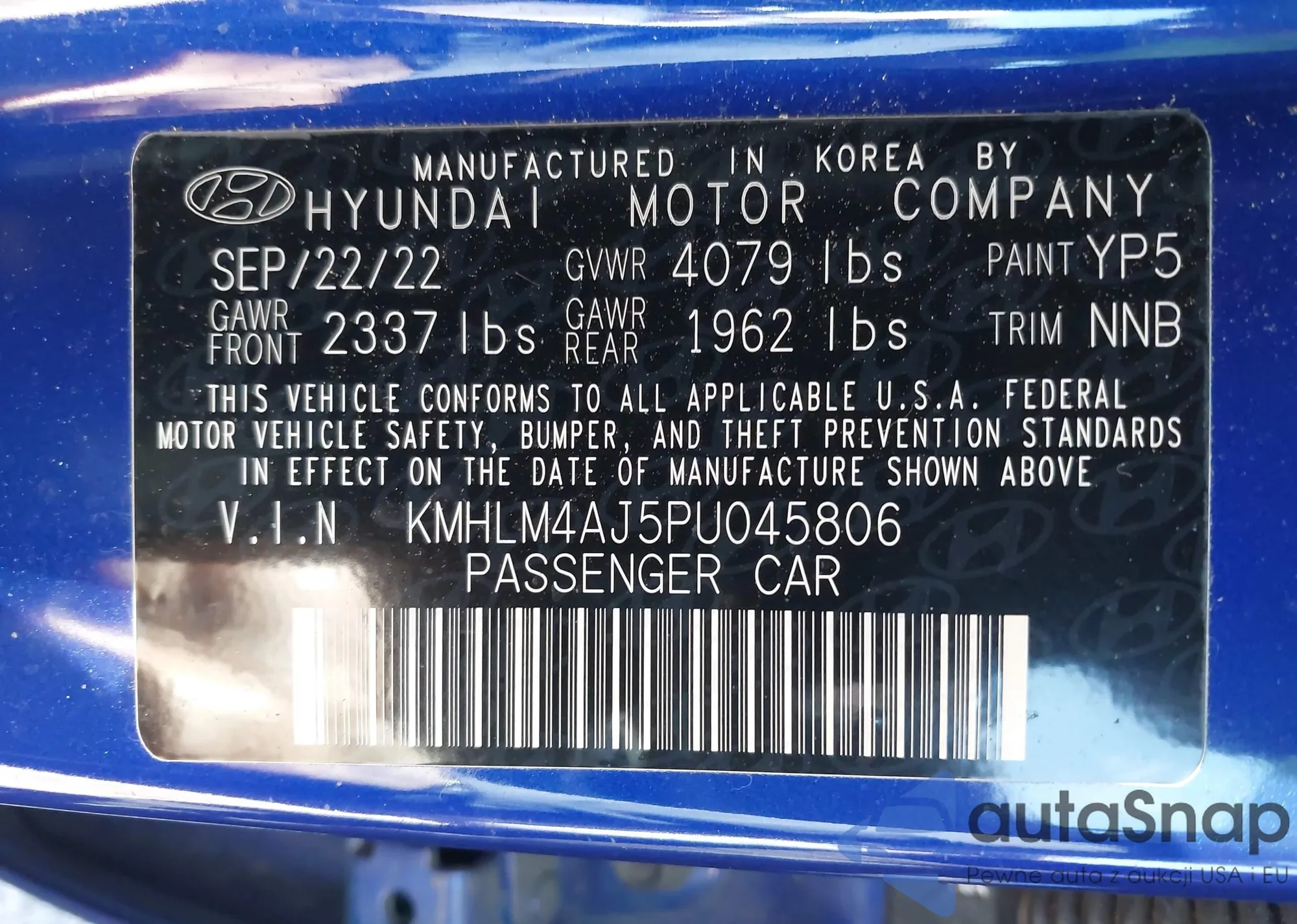 LOT: 43587591 VIN: KMHLM4AJ5PU045806