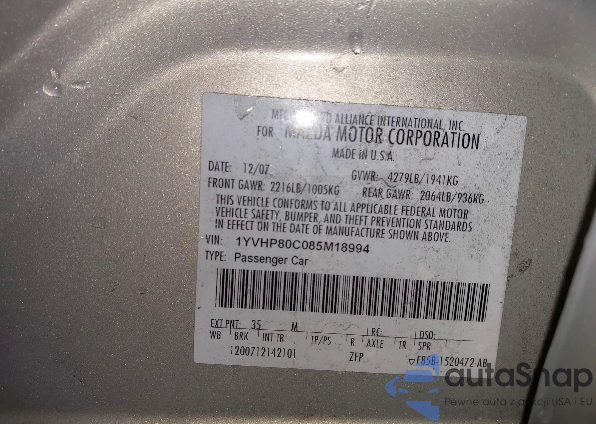 • VIN NM0LS6BN7CT080738