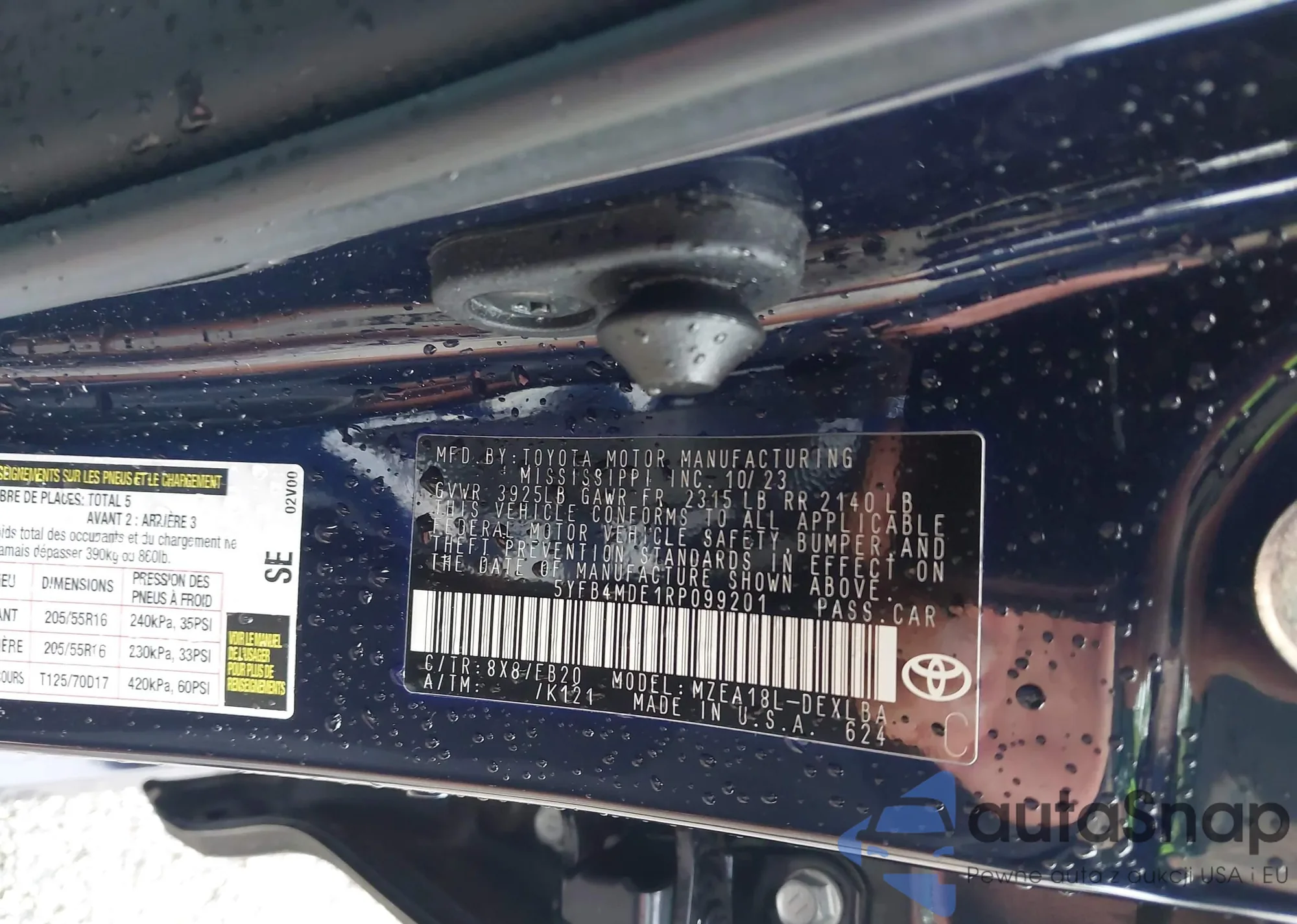 • VIN 5YFB4MDE1RP099201