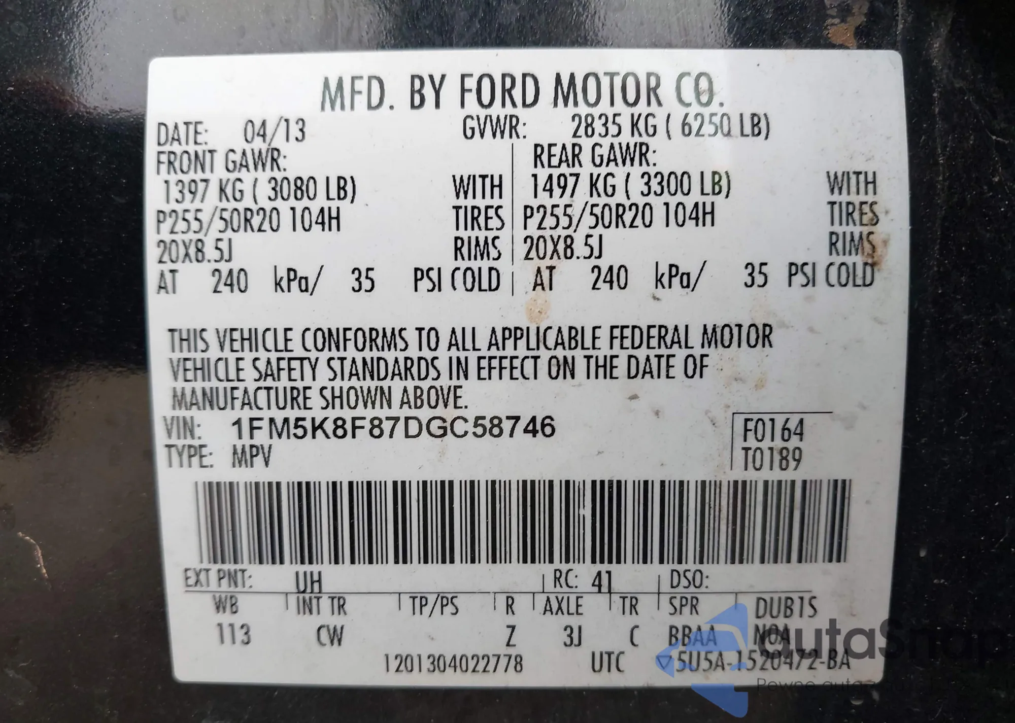 • VIN 1FM5K8F87DGC58746