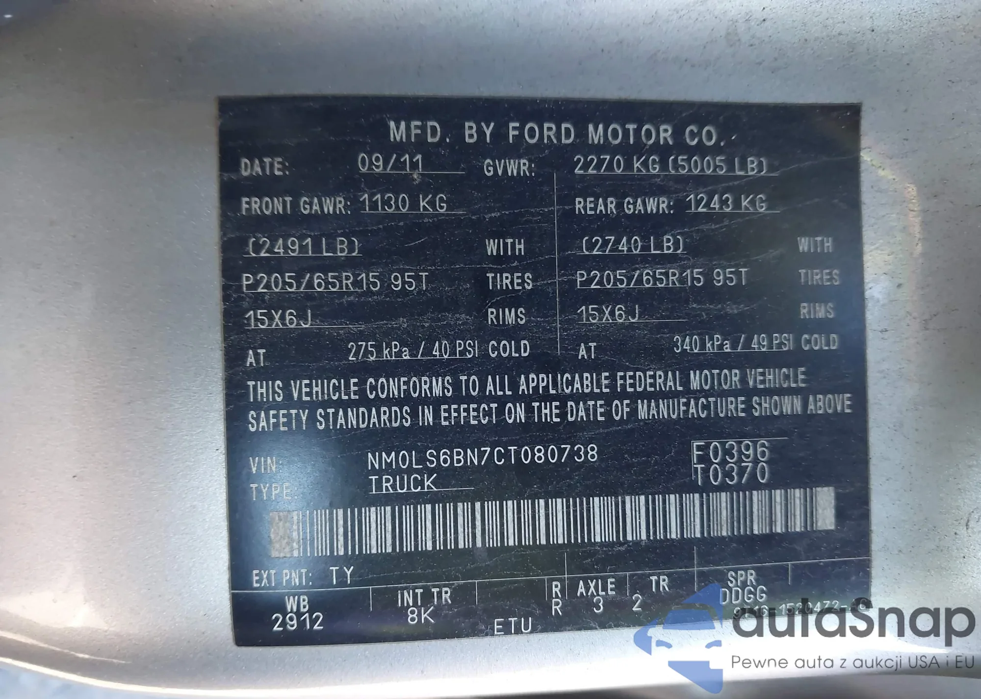 LOT: 43630855 VIN: NM0LS6BN7CT080738