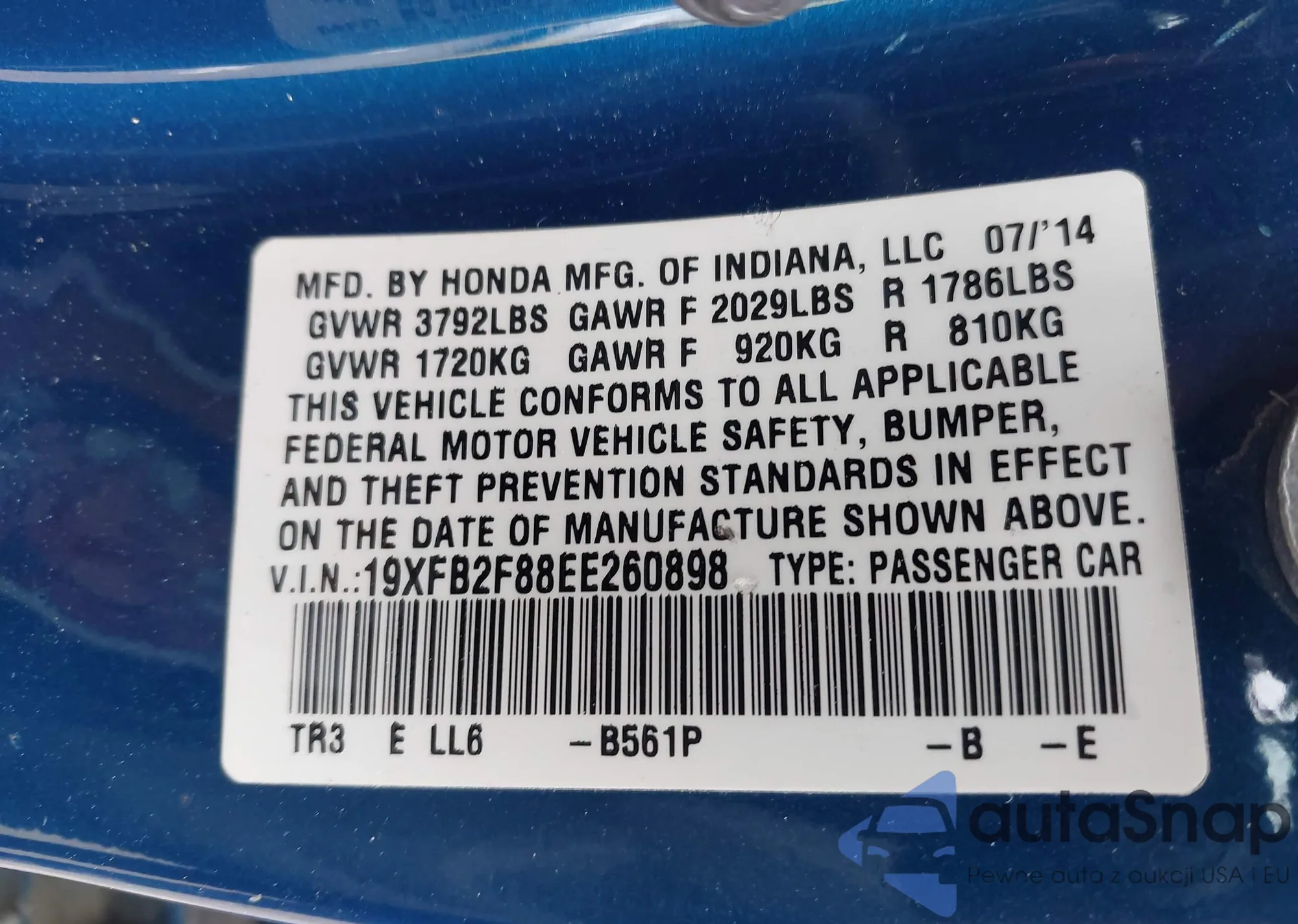 • VIN 19XFB2F88EE260898