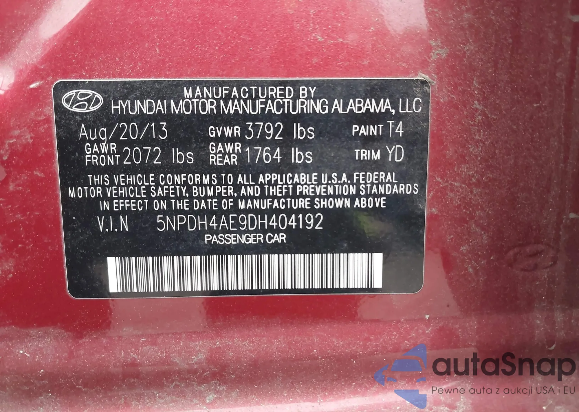 • VIN 5NPDH4AE9DH404192