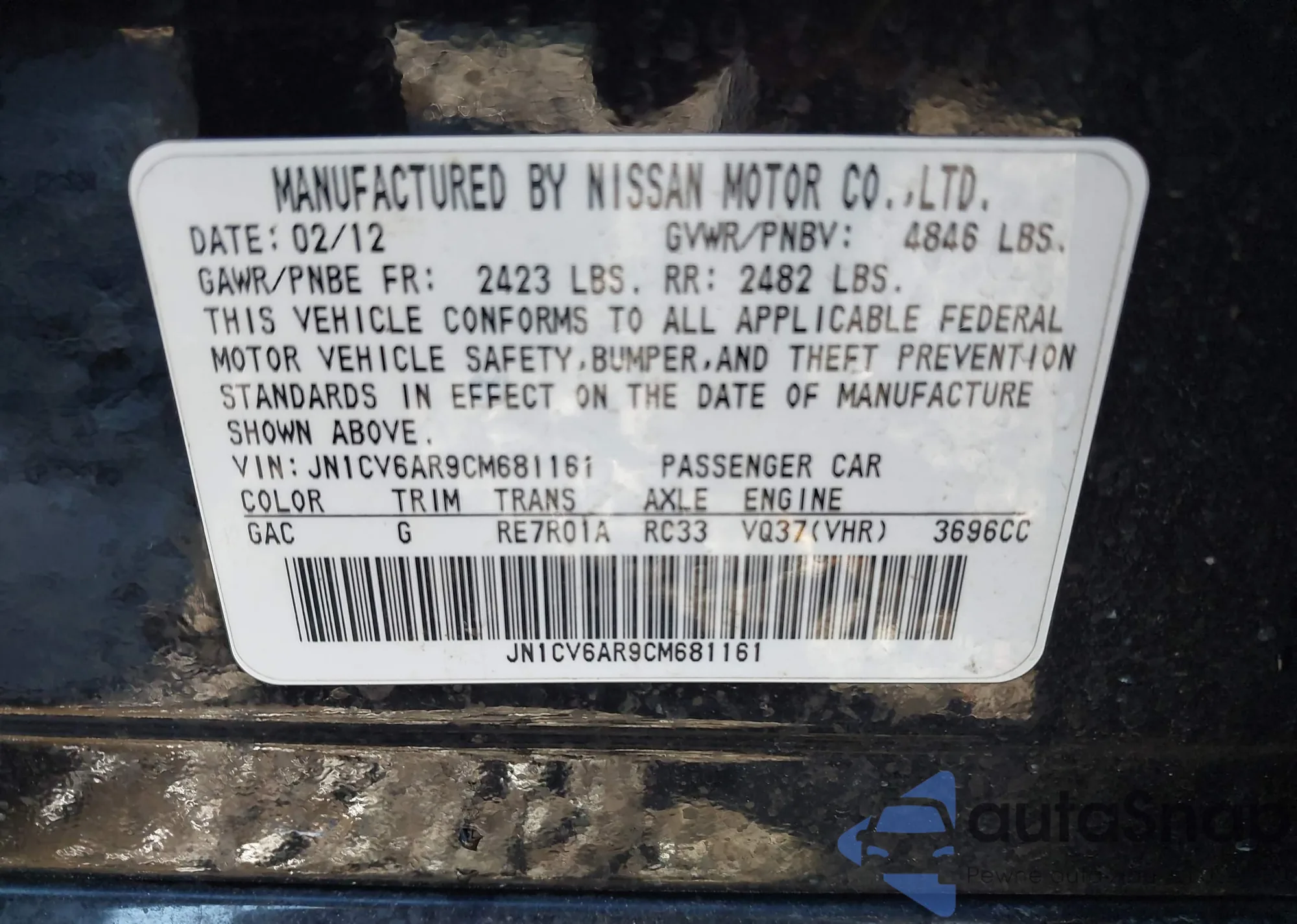 LOT: 43981898 VIN: JN1CV6AR9CM681161