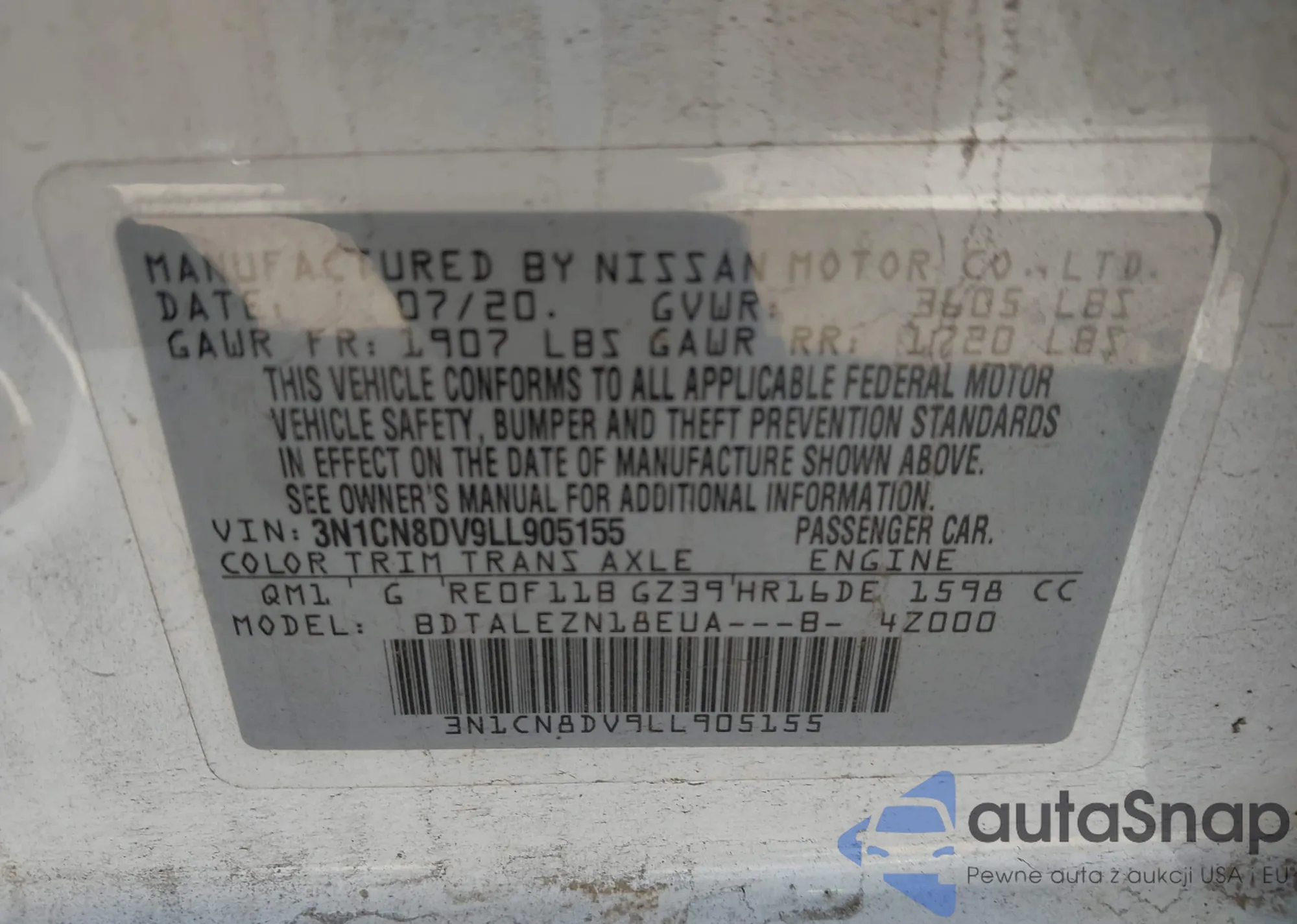 • VIN 3N1CN8DV9LL905155