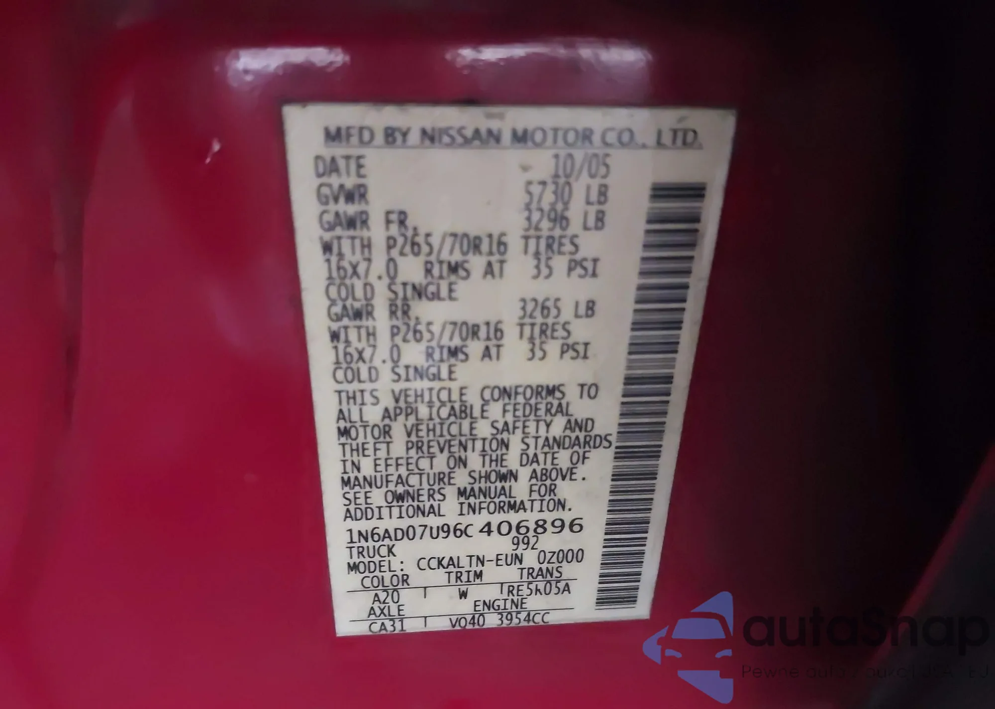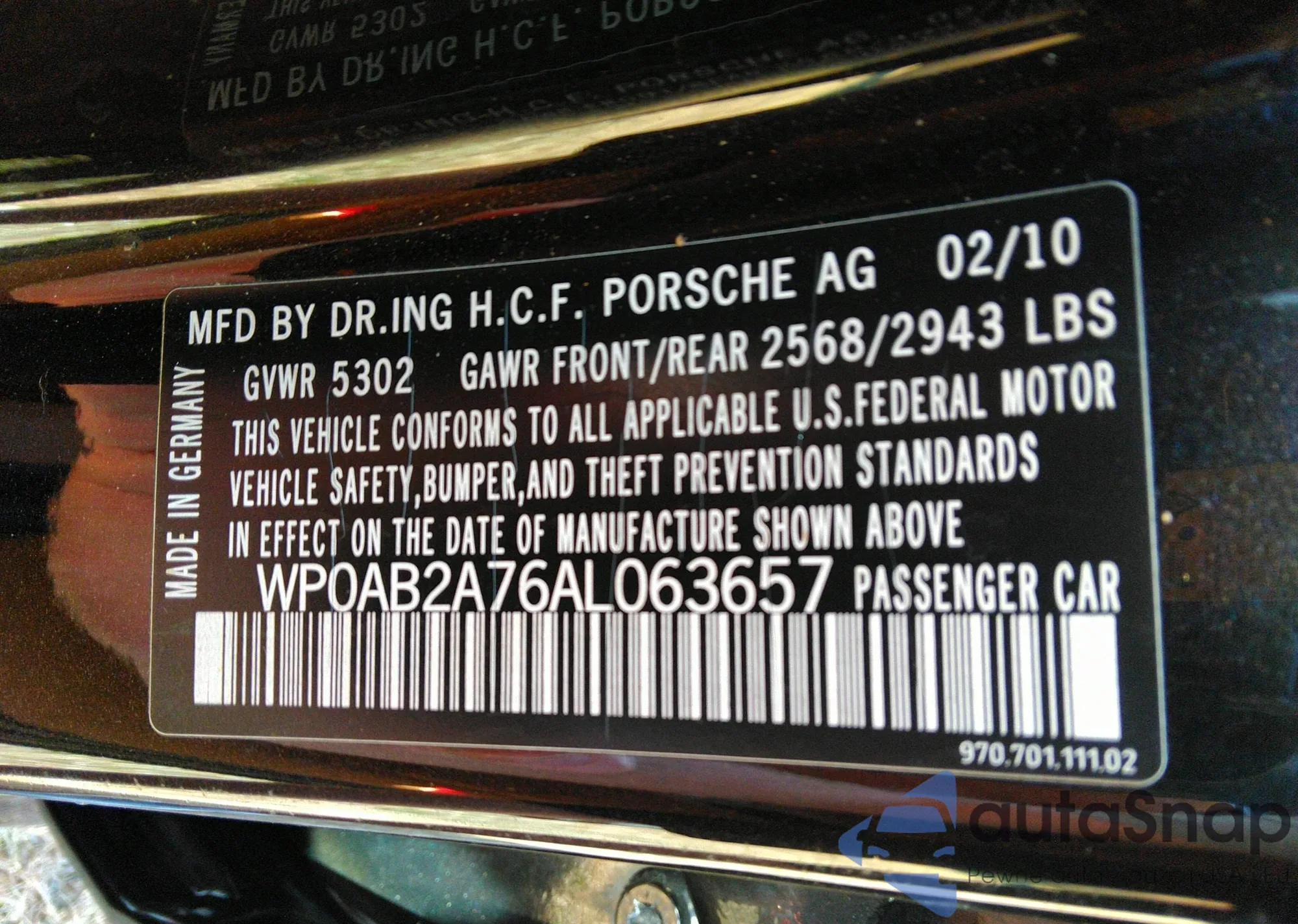 • VIN WP0AB2A76AL063657