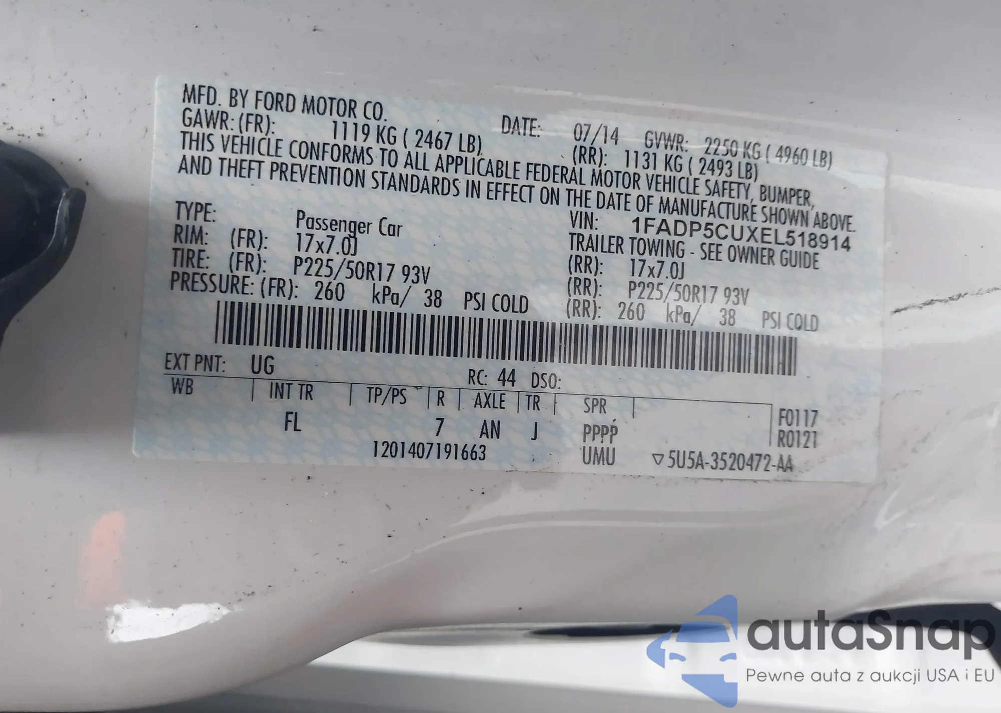 • VIN 1FADP5CUXEL518914