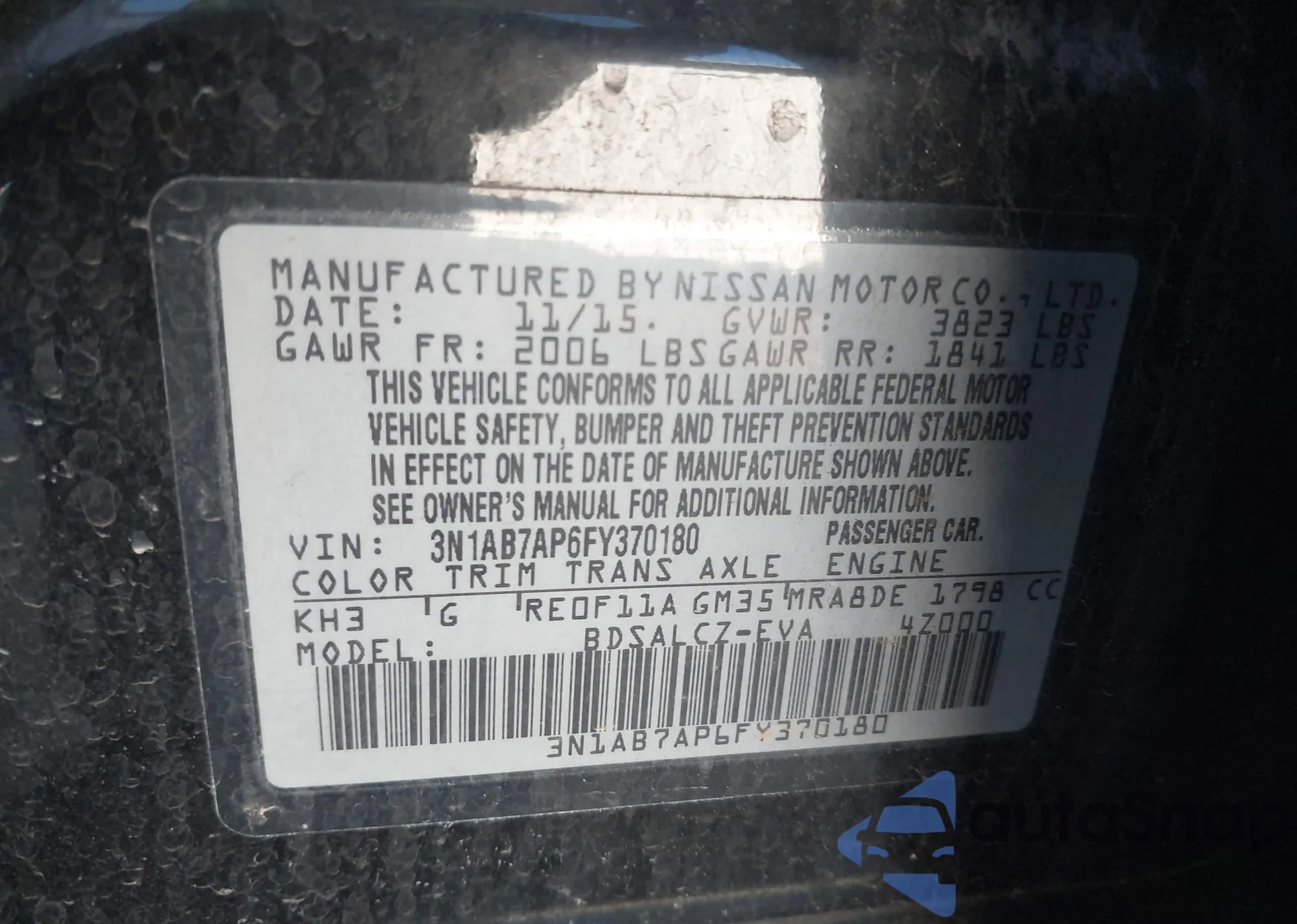 LOT: 43785988 VIN: 3N1AB7AP6FY370180