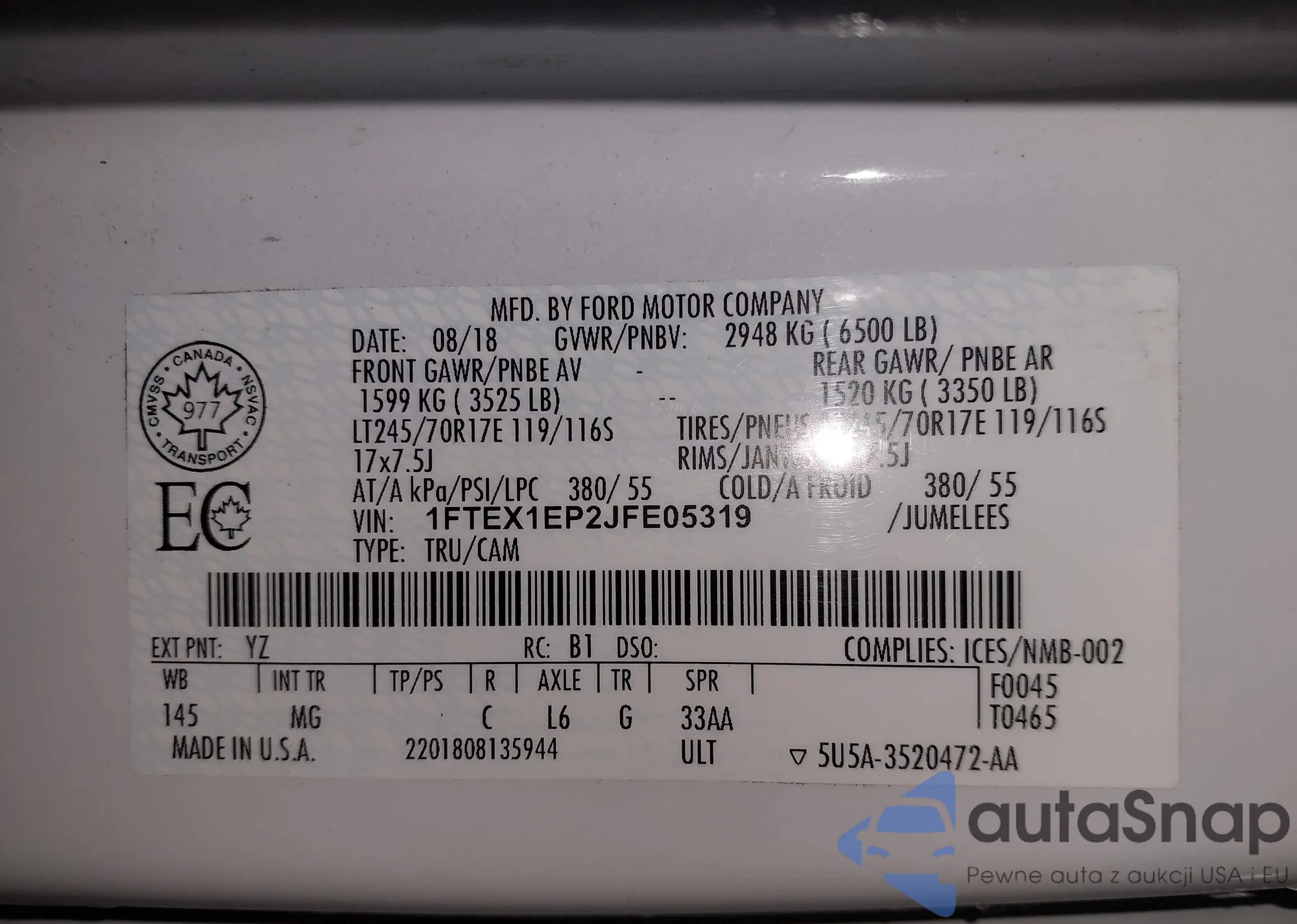 LOT: 43802905 VIN: 1FMJU1RG7REA74638