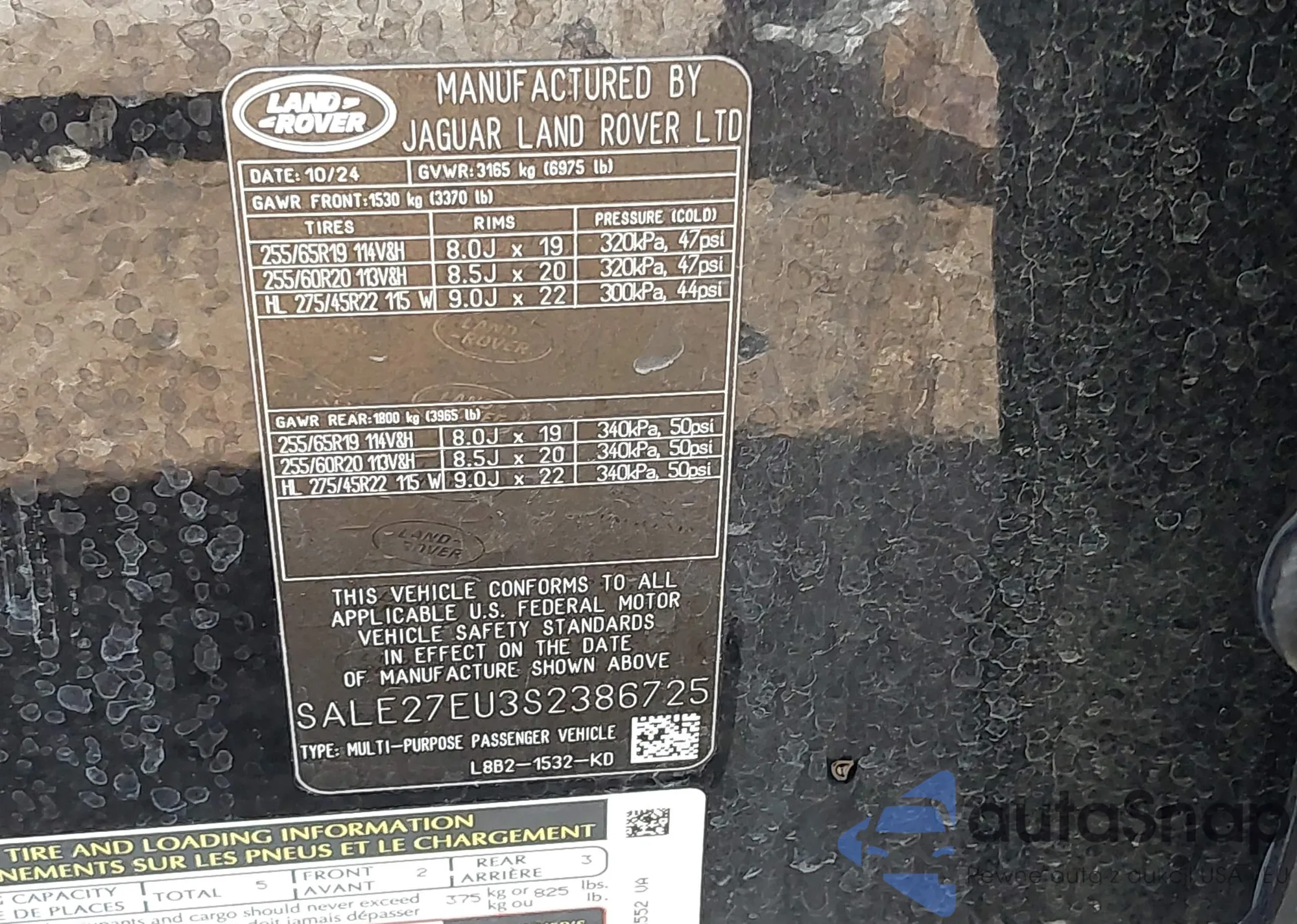 • VIN 1GNS6TRL8SR382631