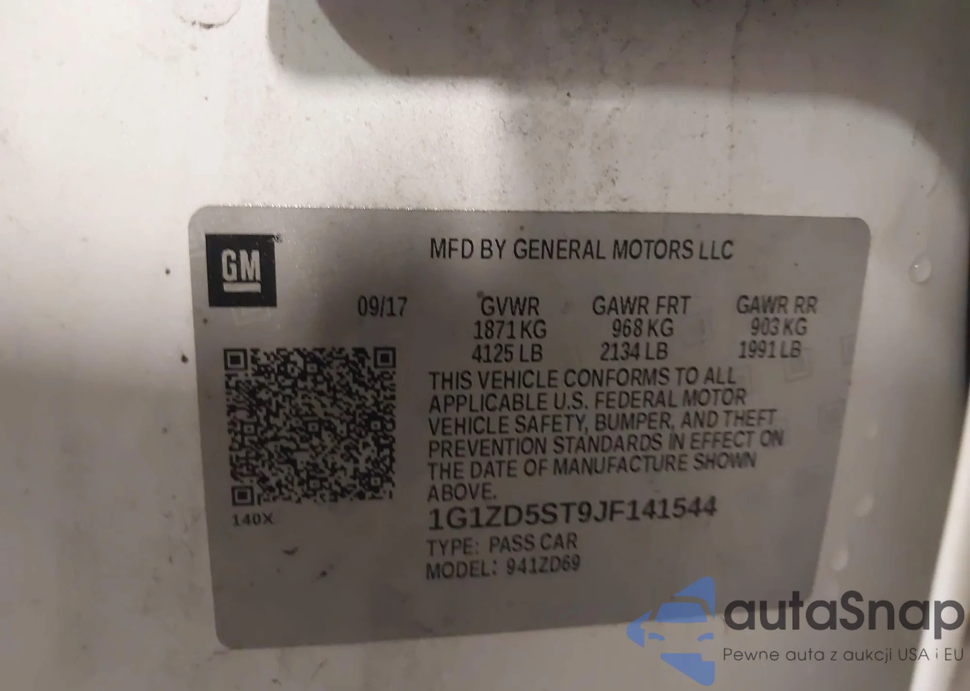 • VIN 1G1ZD5ST9JF141544