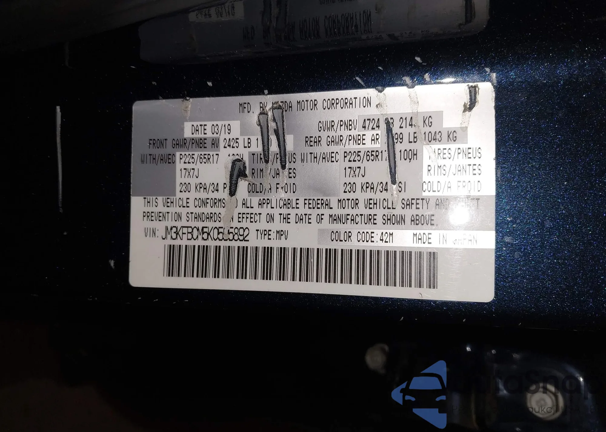 LOT: 43814762 VIN: JM3KFBCM5K0595892