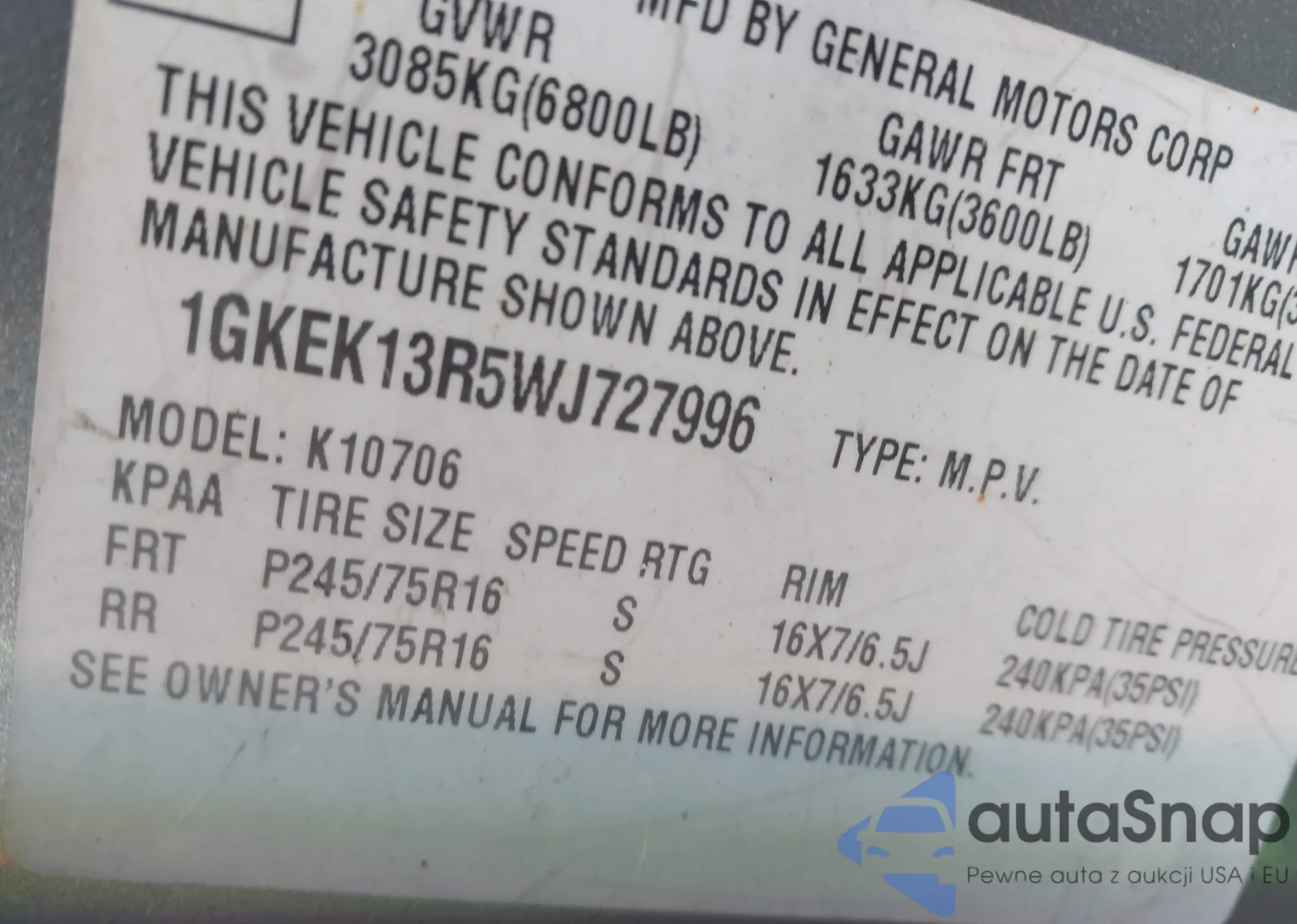 LOT: 43818134 VIN: 1GKEK13R5WJ727996