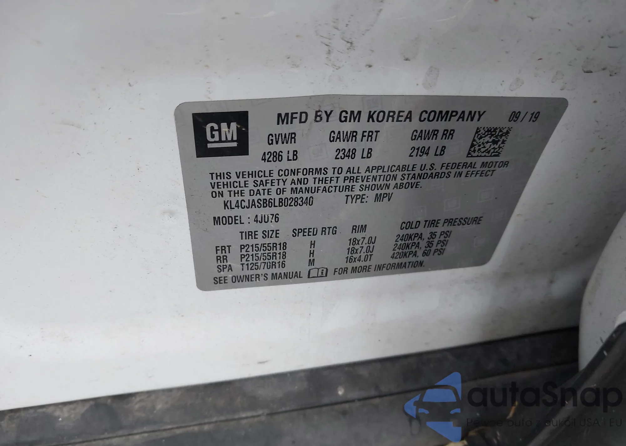 • VIN KL4CJASB6LB028340