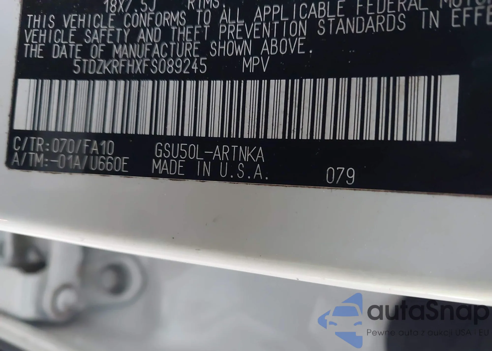 • VIN 5TDZKRFHXFS089245