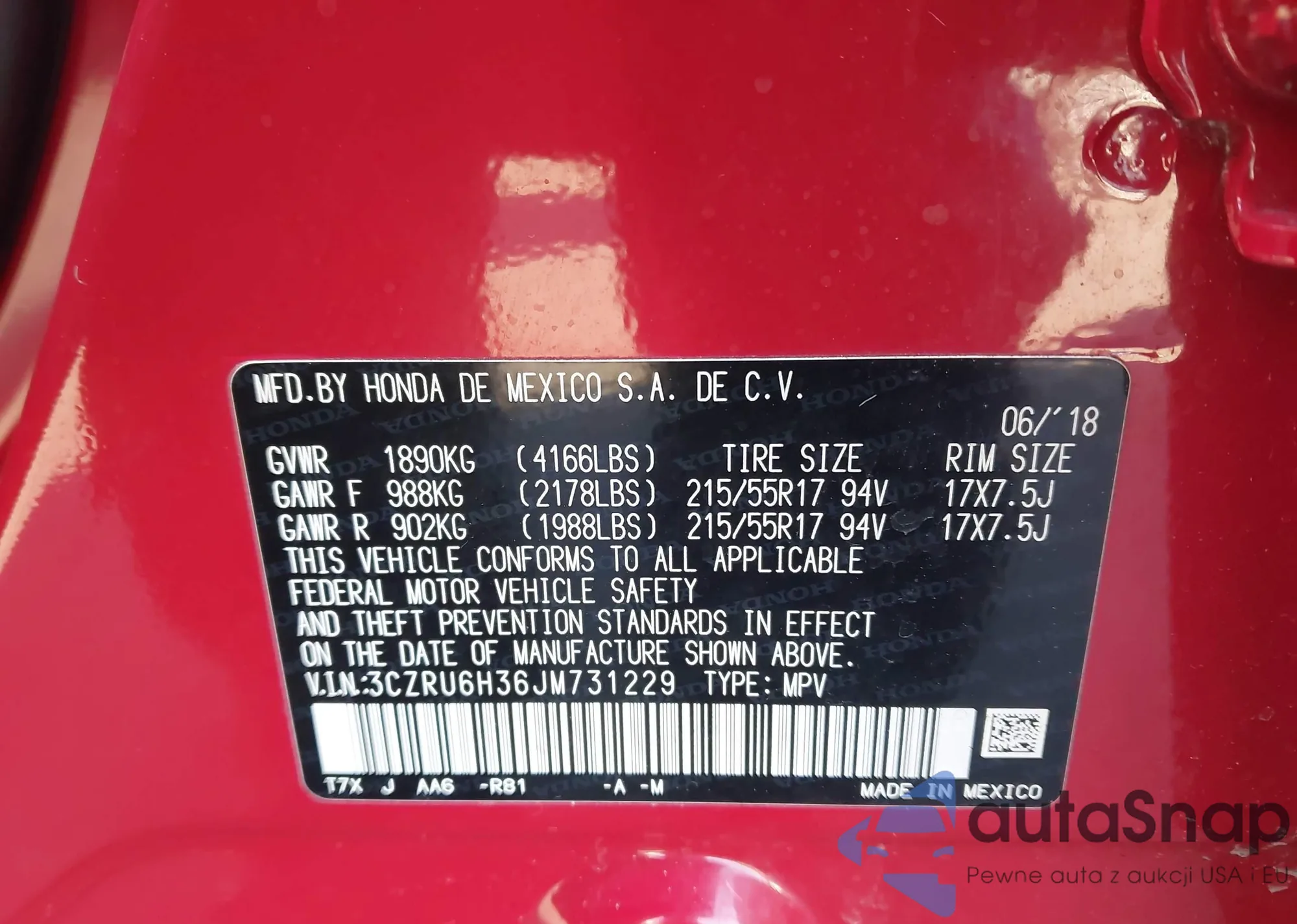 • VIN 3CZRU6H36JM731229