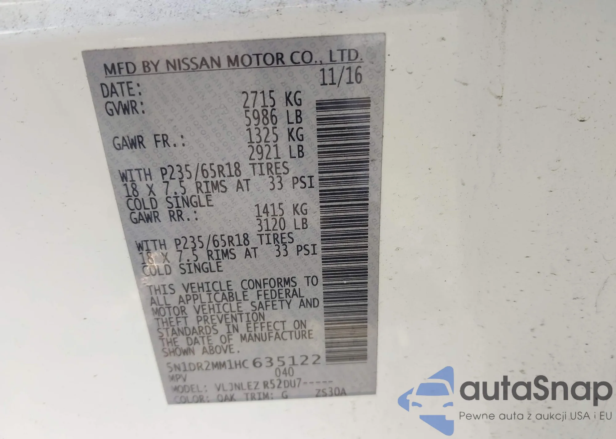 • VIN 5N1DR2MM1HC635122