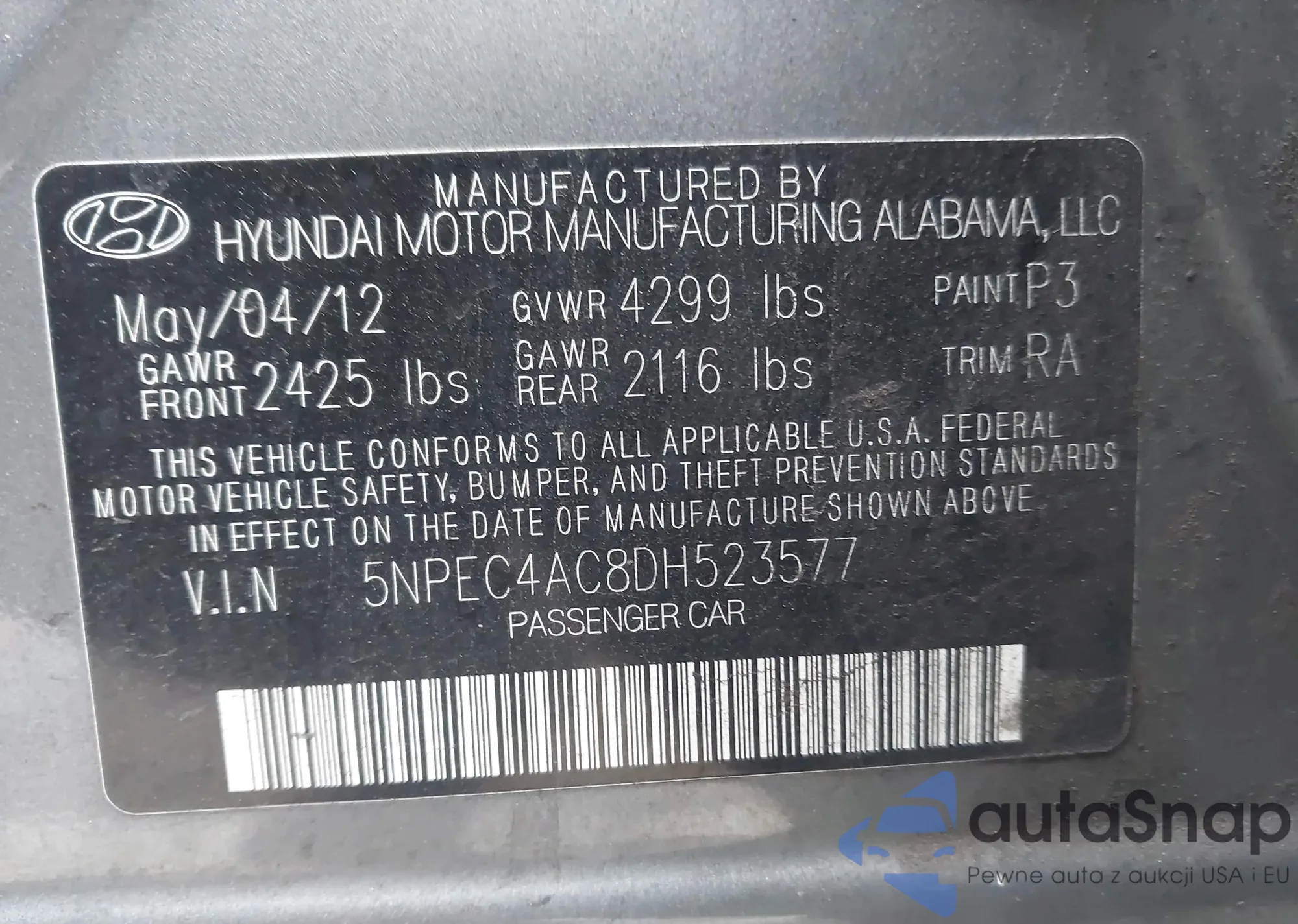• VIN 5NPEC4AC8DH523577