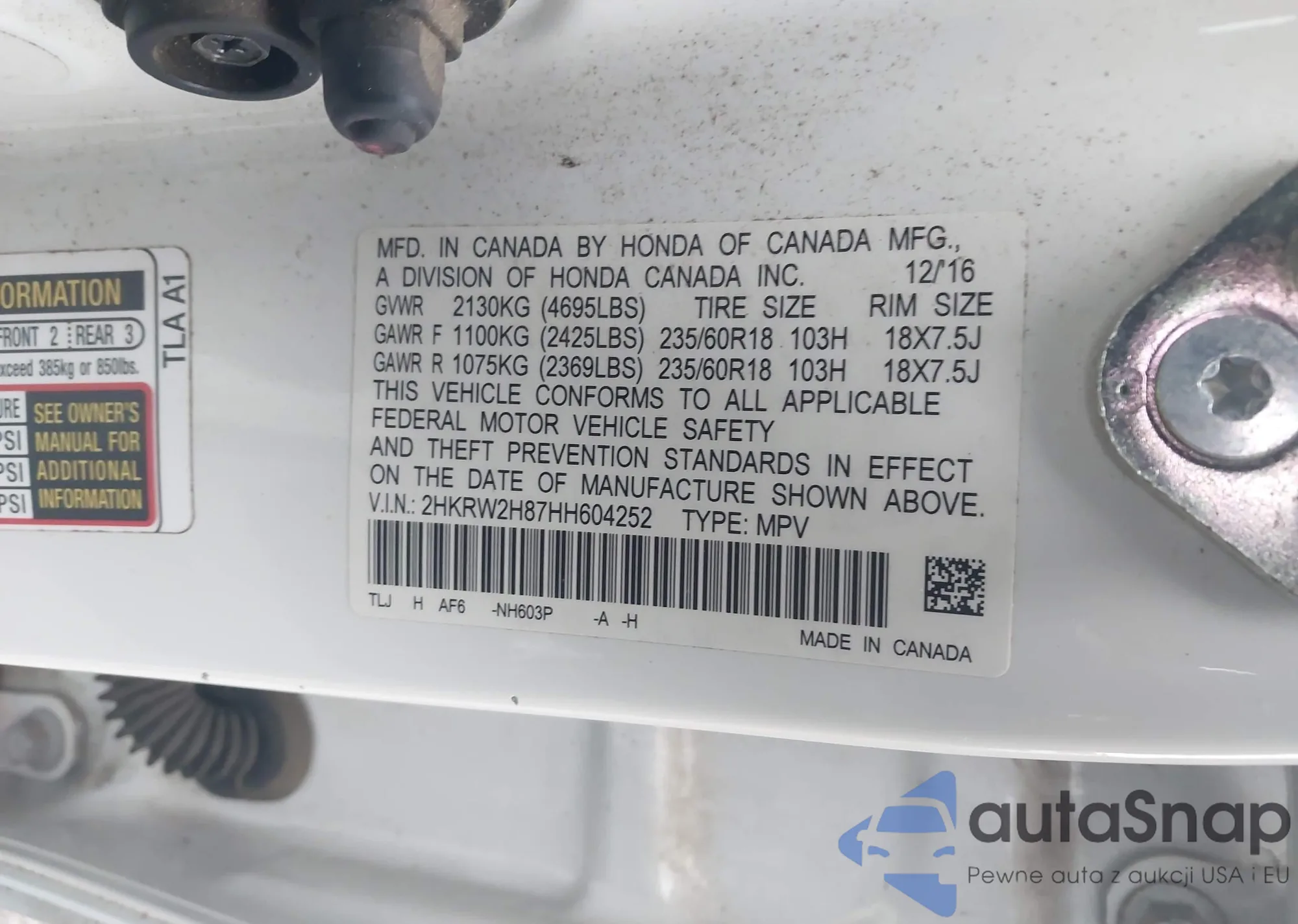 • VIN 2HKRW2H87HH604252