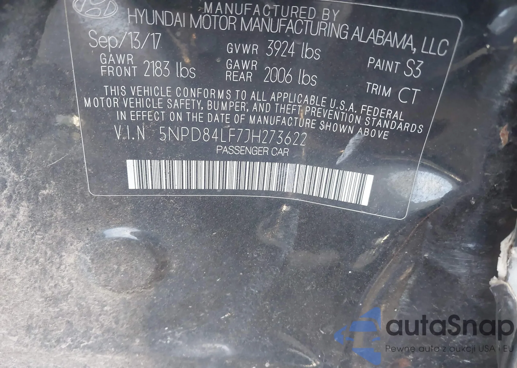 • VIN 5NPD84LF7JH273622