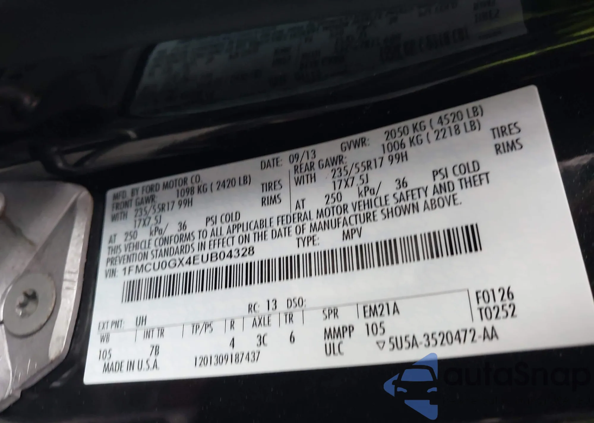 LOT: 43989465 VIN: 1FMCU0GX4EUB04328