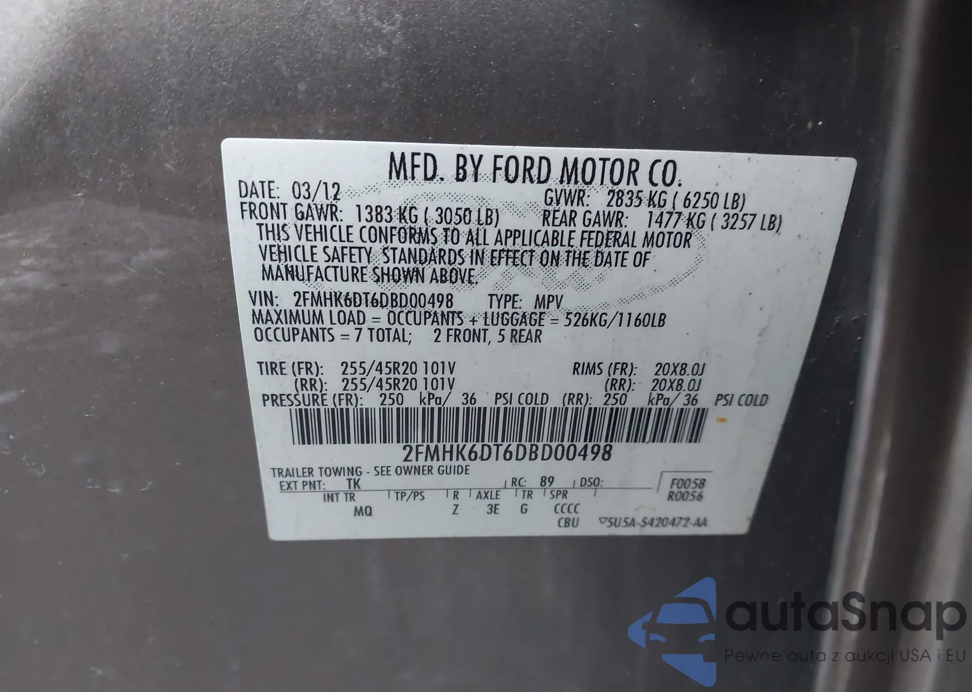 • VIN 2FMHK6DT6DBD00498