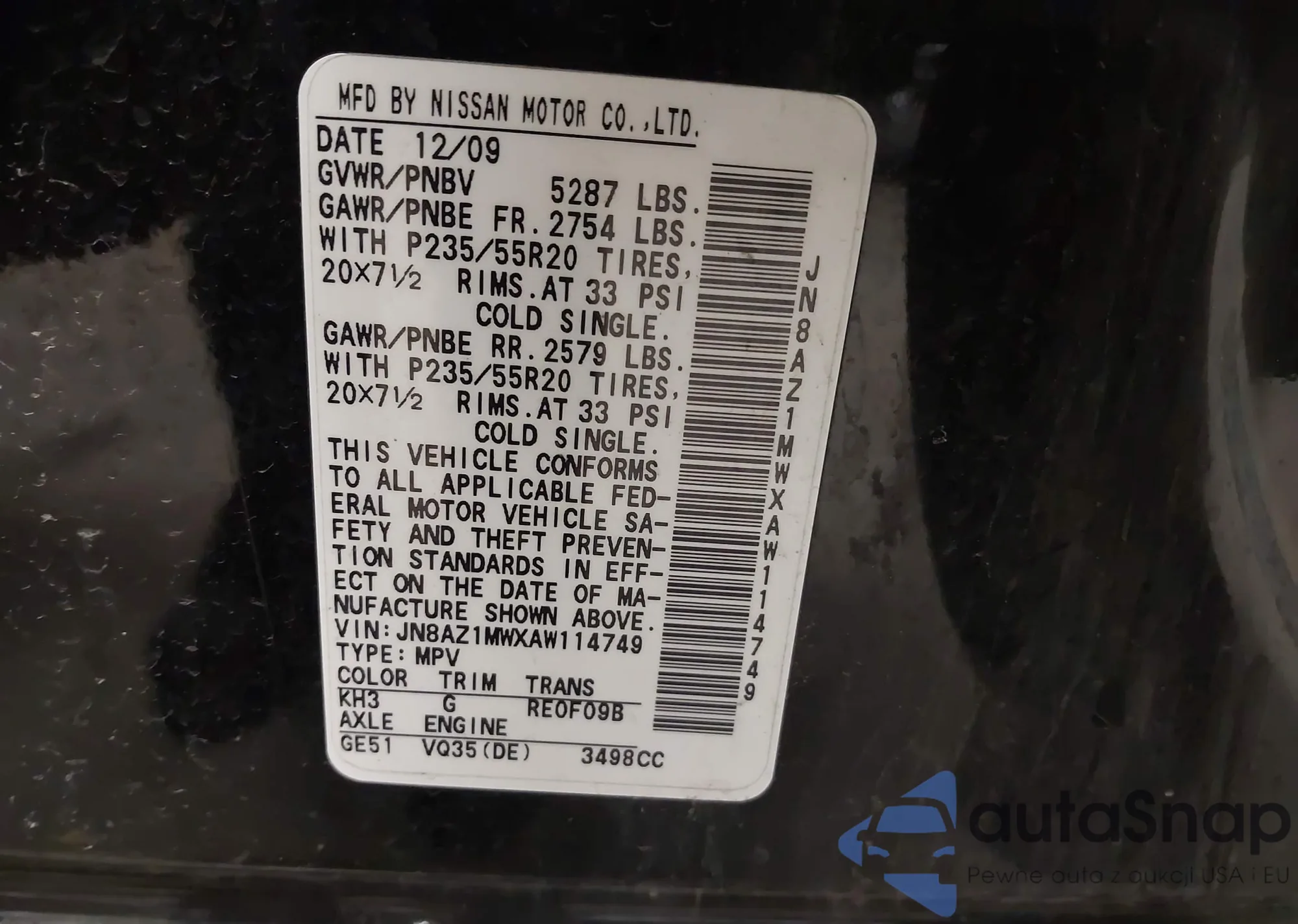 • VIN 1N4AA5AP2EC489118