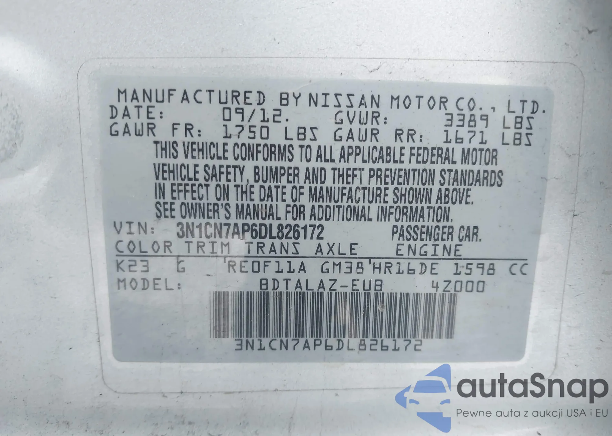 • VIN 3N1CB51D11L514016