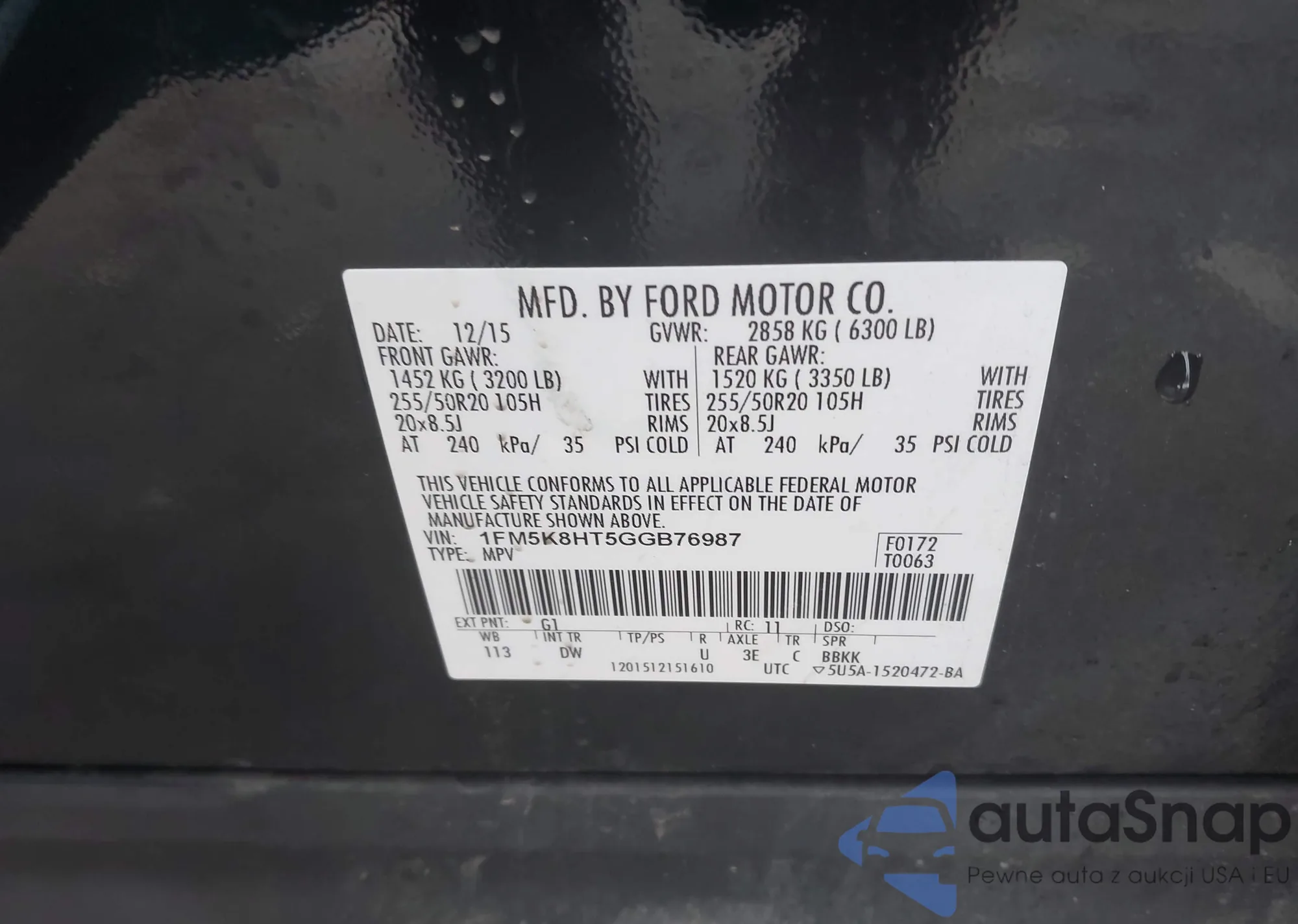 • VIN 1FM5K8HT5GGB76987