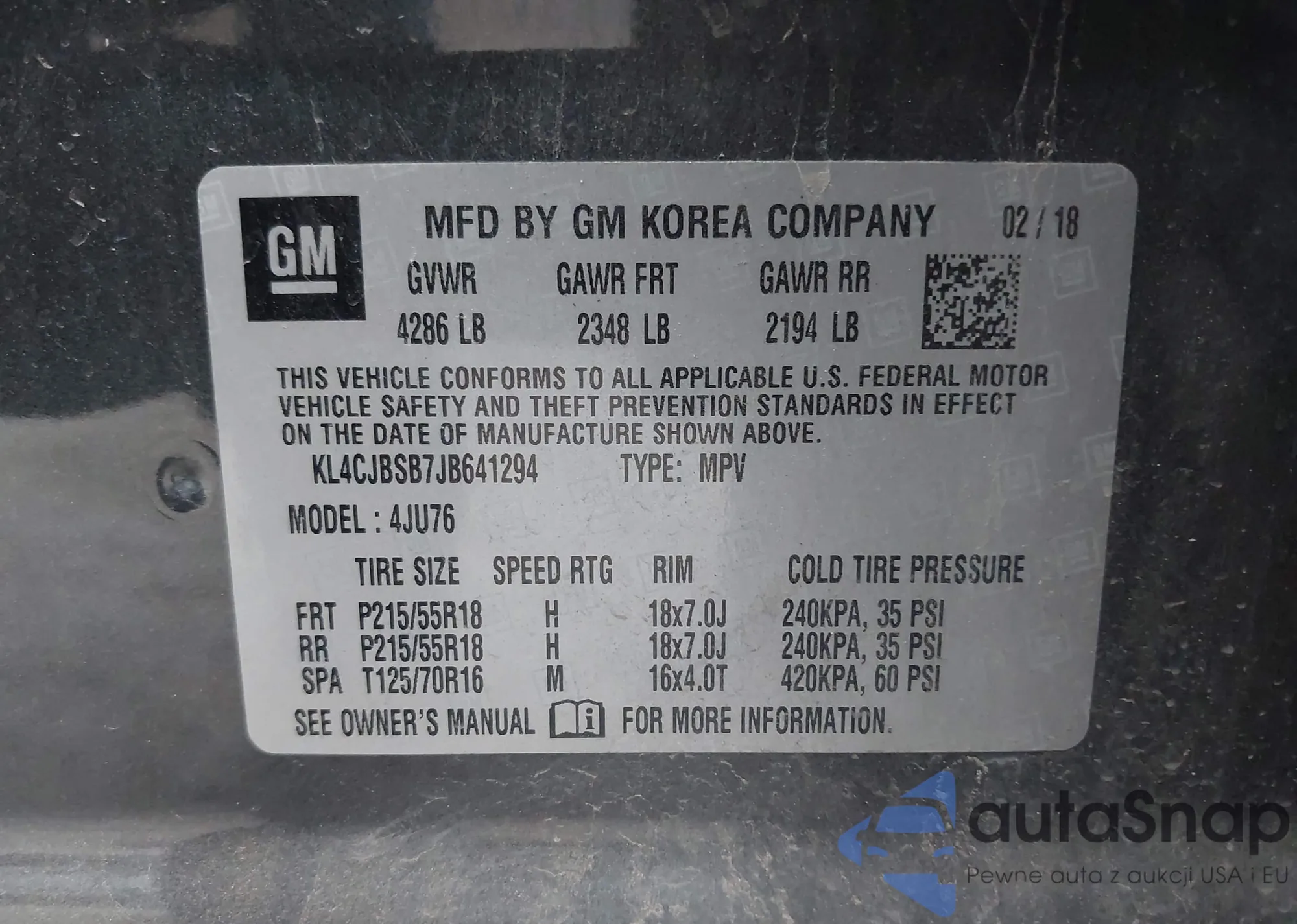 • VIN KL4CJBSB7JB641294